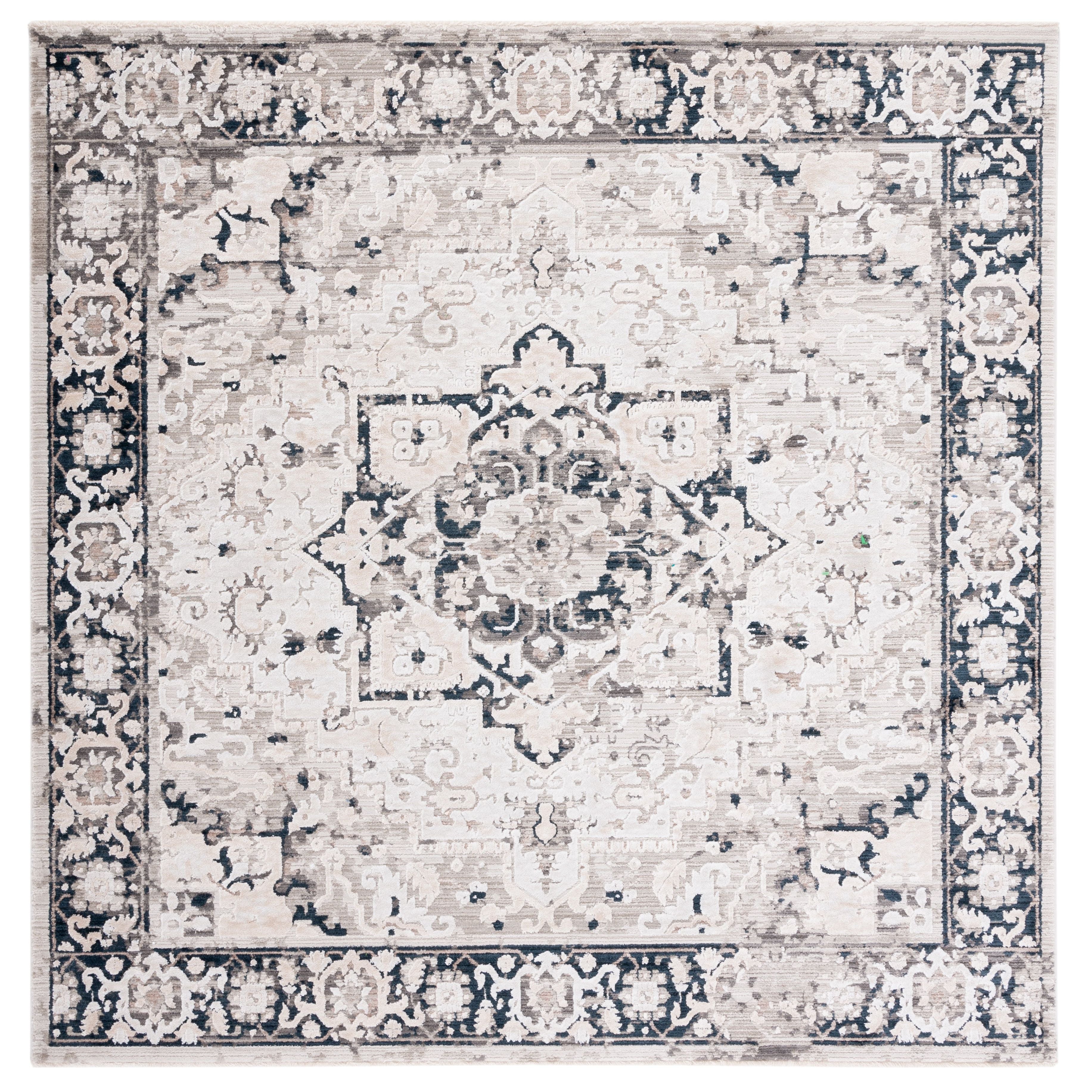 Mayflower MAY293B area rug from SAFAVIEH, a perfect addition to modern homes seeking a touch of distinctive charm. Crafted with a blend of luxurious synthetic fibers, this rug features trendy distressed patterns and erased-weave designs, accented by subtle fringed edges, available in both rectangular and square shapes for an elegant aesthetic. With a thickness of approximately 0.5 inches, it fits seamlessly in various spaces like the dining room, bedroom, living room, or home office, enhancing any room with a beautiful timeworn appeal.