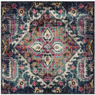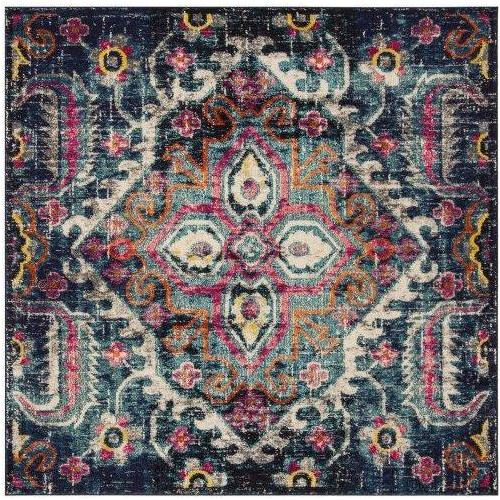 Monaco MNC252J Blue Fuchsia rug, a vibrant addition to your home decor. Embrace the free-spirited Bohemian-chic style with this rug that combines folkloric and formal Persian designs in a modern way. The high and low loop pile creates a textured look that is both durable and stylish, perfect for any room in your home.