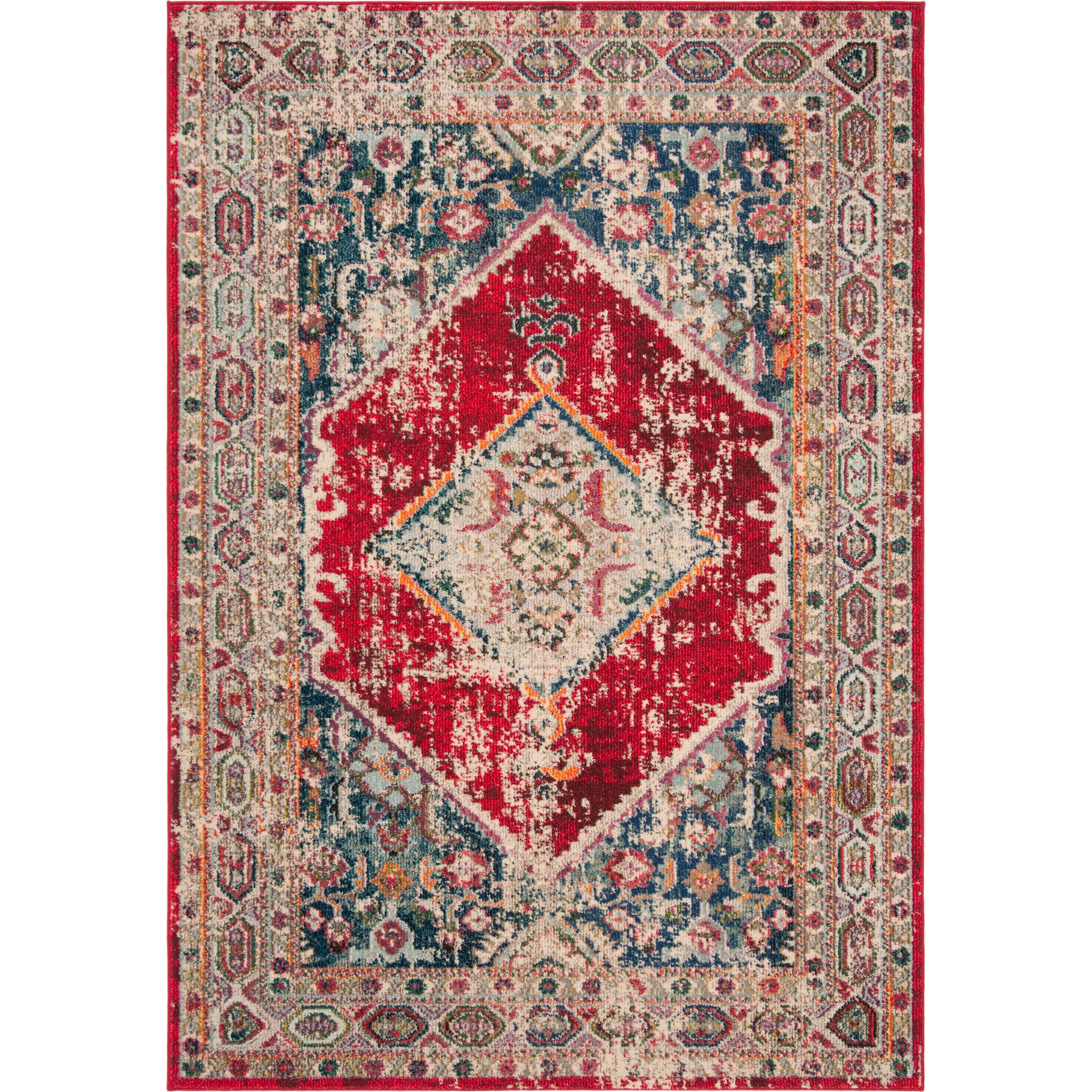 Monaco MNC257A Ivory Red rug from our vibrant Monaco Collection! These rugs effortlessly blend free-spirited Bohemian-chic style with traditional Persian designs, adding a pop of color to any space. Crafted from durable polypropylene, the mix of high and low loop pile creates a unique texture that is both stylish and practical.