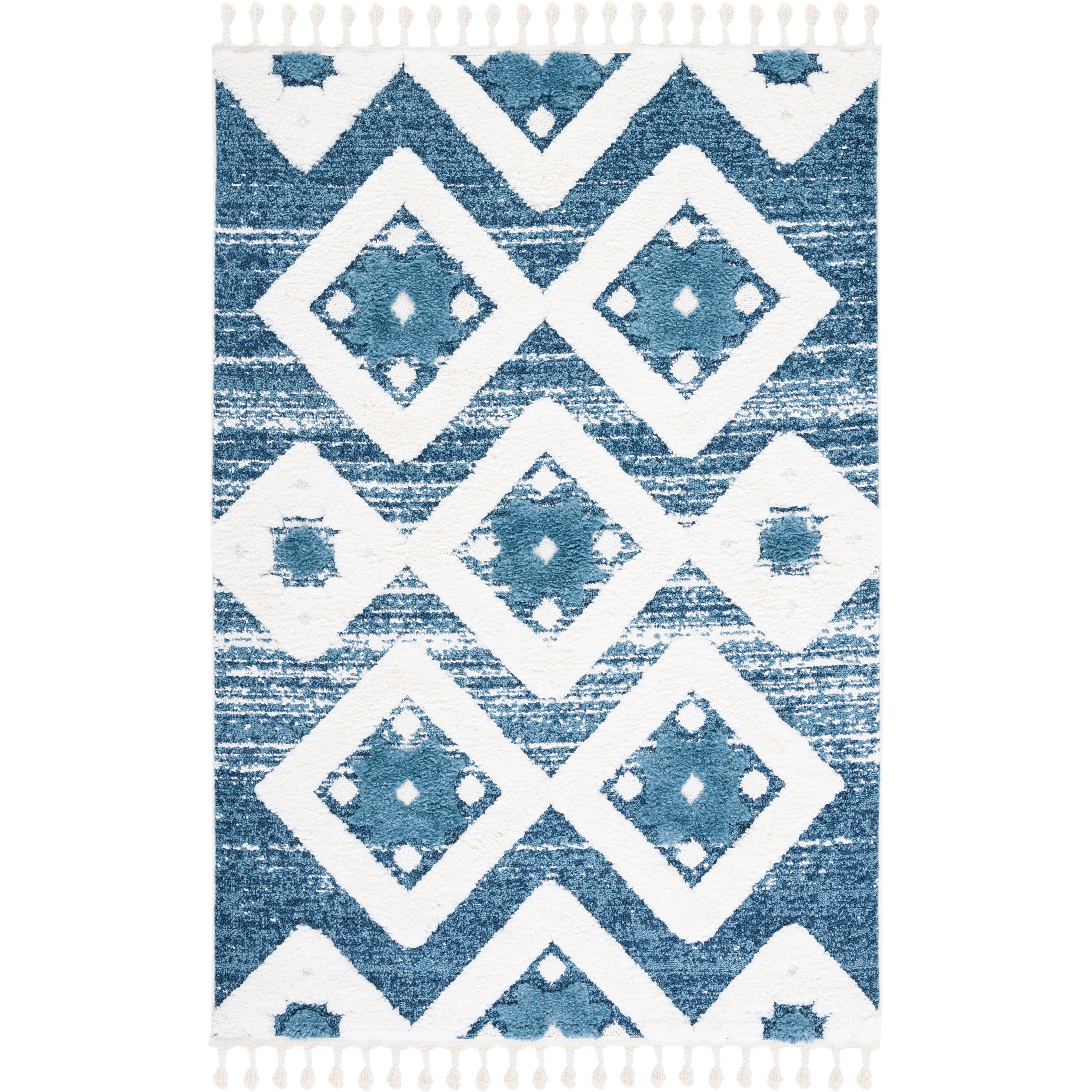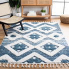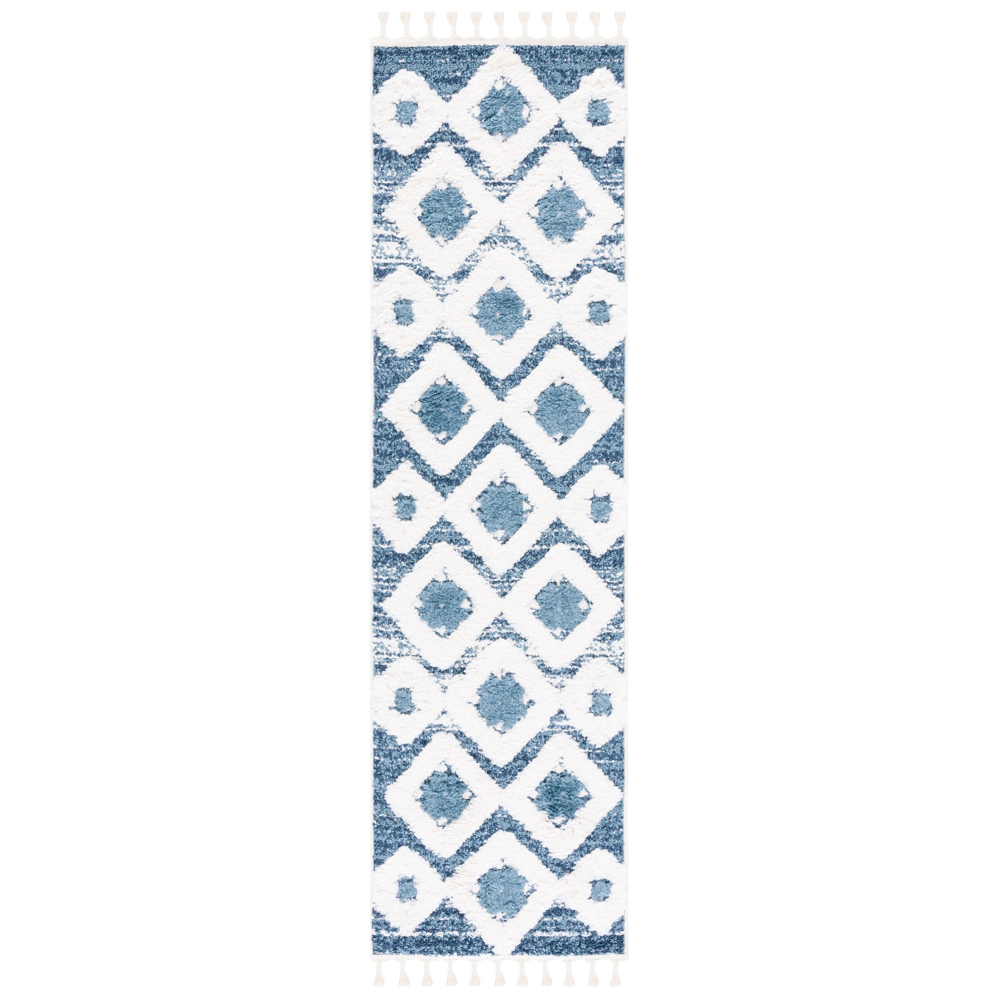 Moroccan Tassel Shag MTS664M, a stunning addition to SAFAVIEH's Moroccan Tassel collection. These thick shag rugs exude Old World charm with their diamond designs and lush textures, perfect for adding a touch of rustic-chic style to your space. Finished with braided fringe for a whimsical flair, these rugs are machine-woven using soft and durable synthetic yarns, ensuring long-lasting beauty for your home.