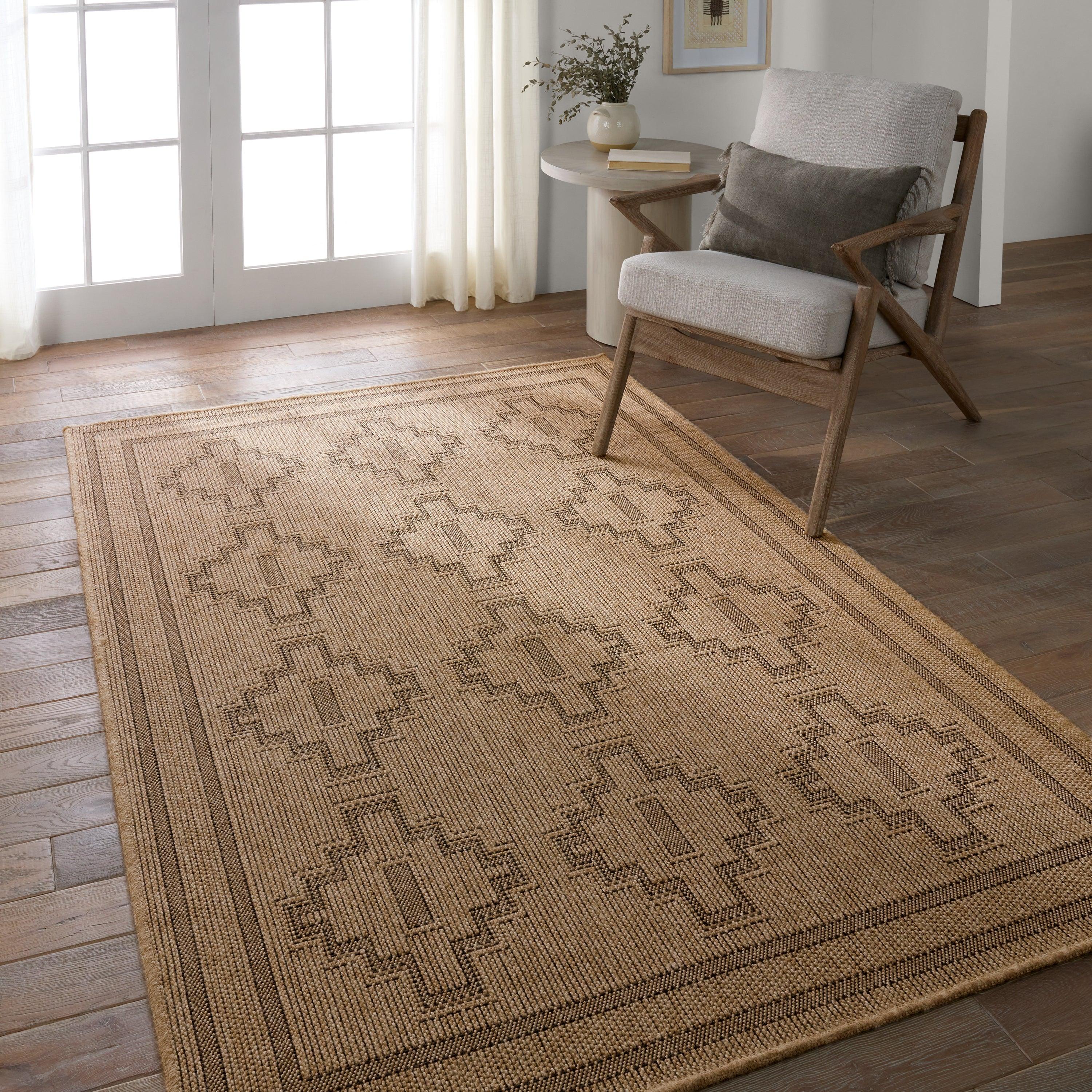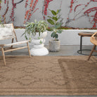 Nambe NMB04 Adrar rug, a versatile and durable addition to your indoor or outdoor space. This rug exudes a grounding quality with its weather-resistant design that mimics natural woven textures. The warm neutral palette, inspired by classic grass fibers, adds a touch of elegance to any room.