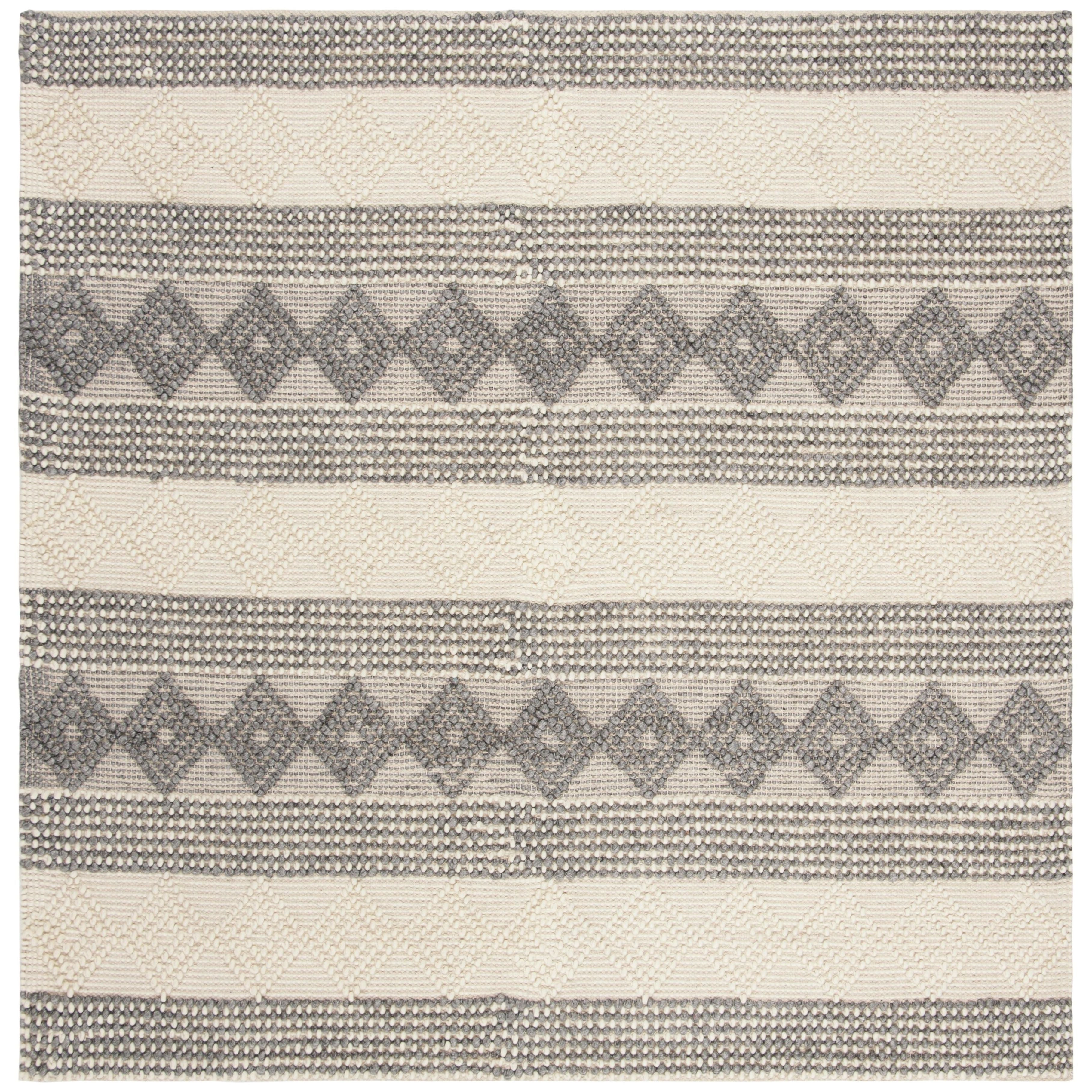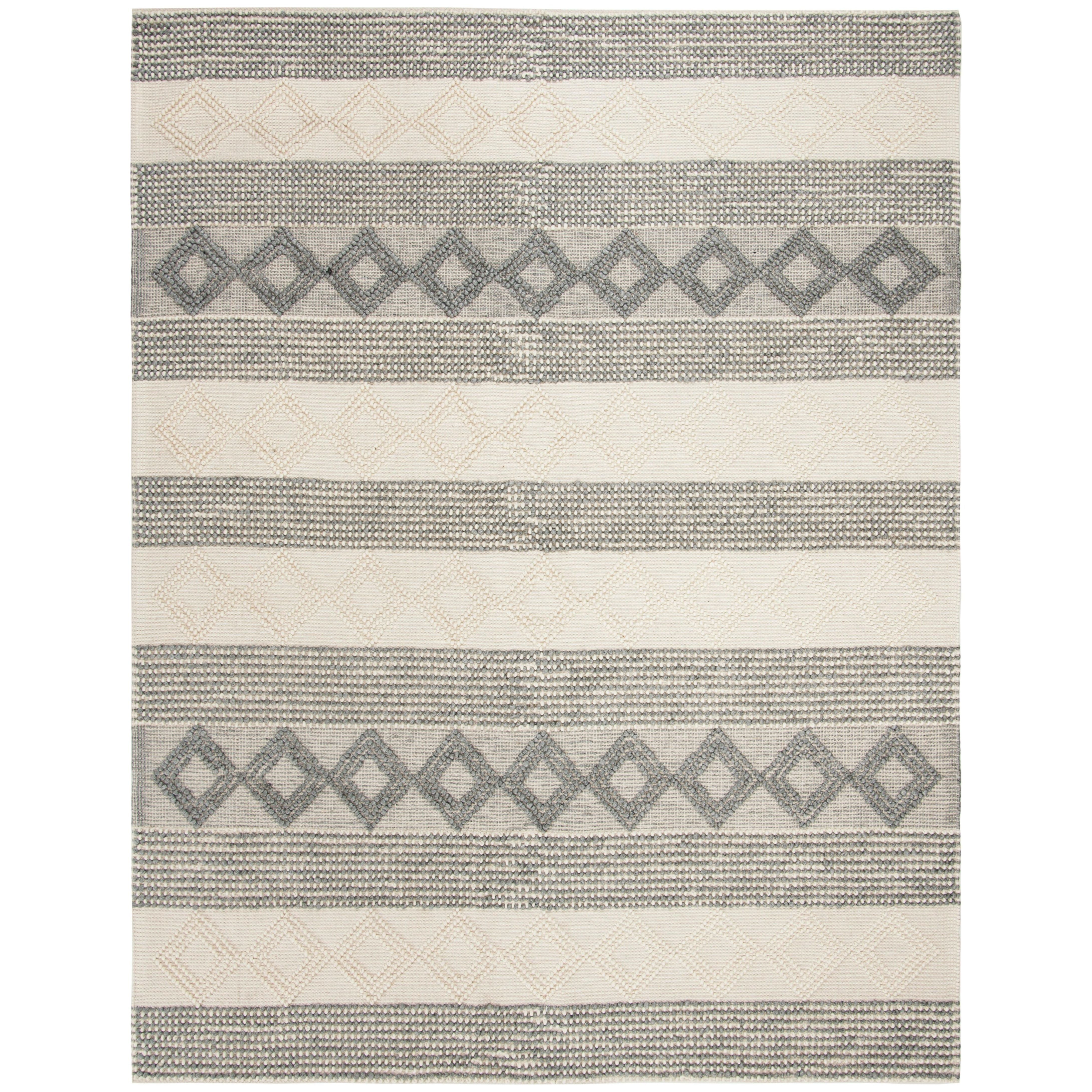 Natura NAT105F Grey Ivory rug from the Natura Collection, a perfect blend of chic beach house style and artisan craftsmanship. This hand-tufted rug features soft, lustrous yarns that create a mix of oversized loops and flat surfaces for a richly textured look. With braided motifs, twills, and boucle effects, this collection offers a casual yet sophisticated vibe. The rug boasts an approximate thickness of 0.5 inches, adding plush comfort to any space.