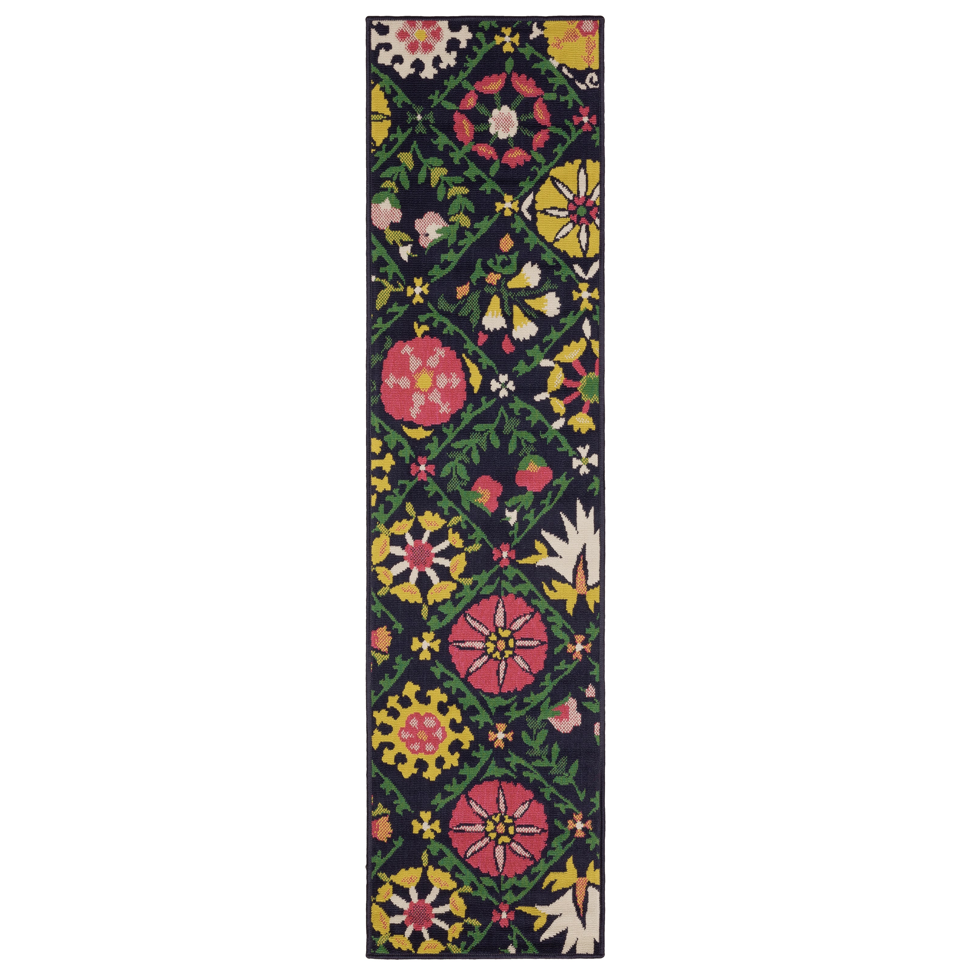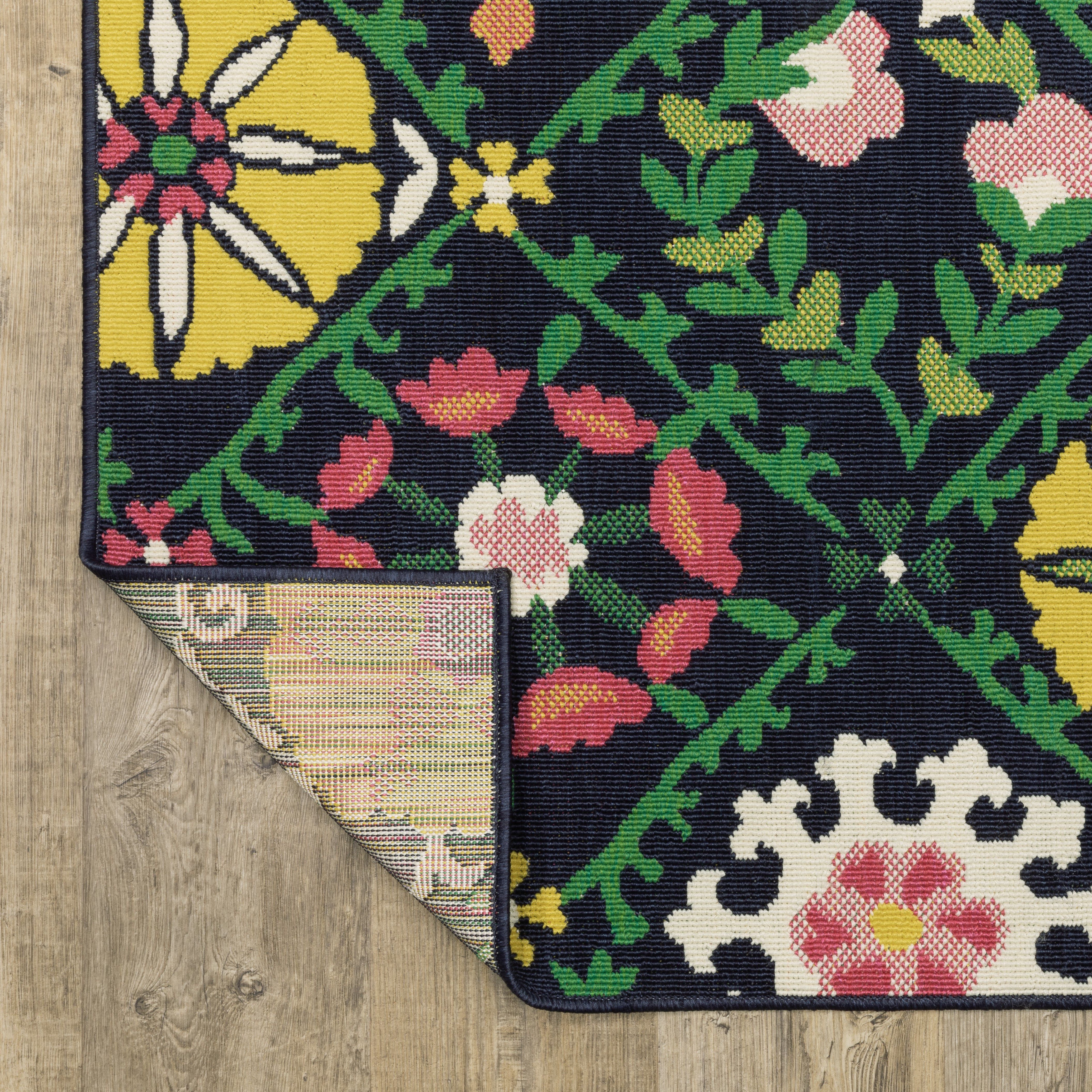 a little preppy and a lot of fun! Featuring iconic motifs in vibrant shades of sunflower yellow and flamingo pink alongside a classic navy and green duo, this collection is sure to bring feelings of sweet summer year-round. Power-loomed of 100% polypropylene, these easy-care rugs are perfect for use inside or outside the home.