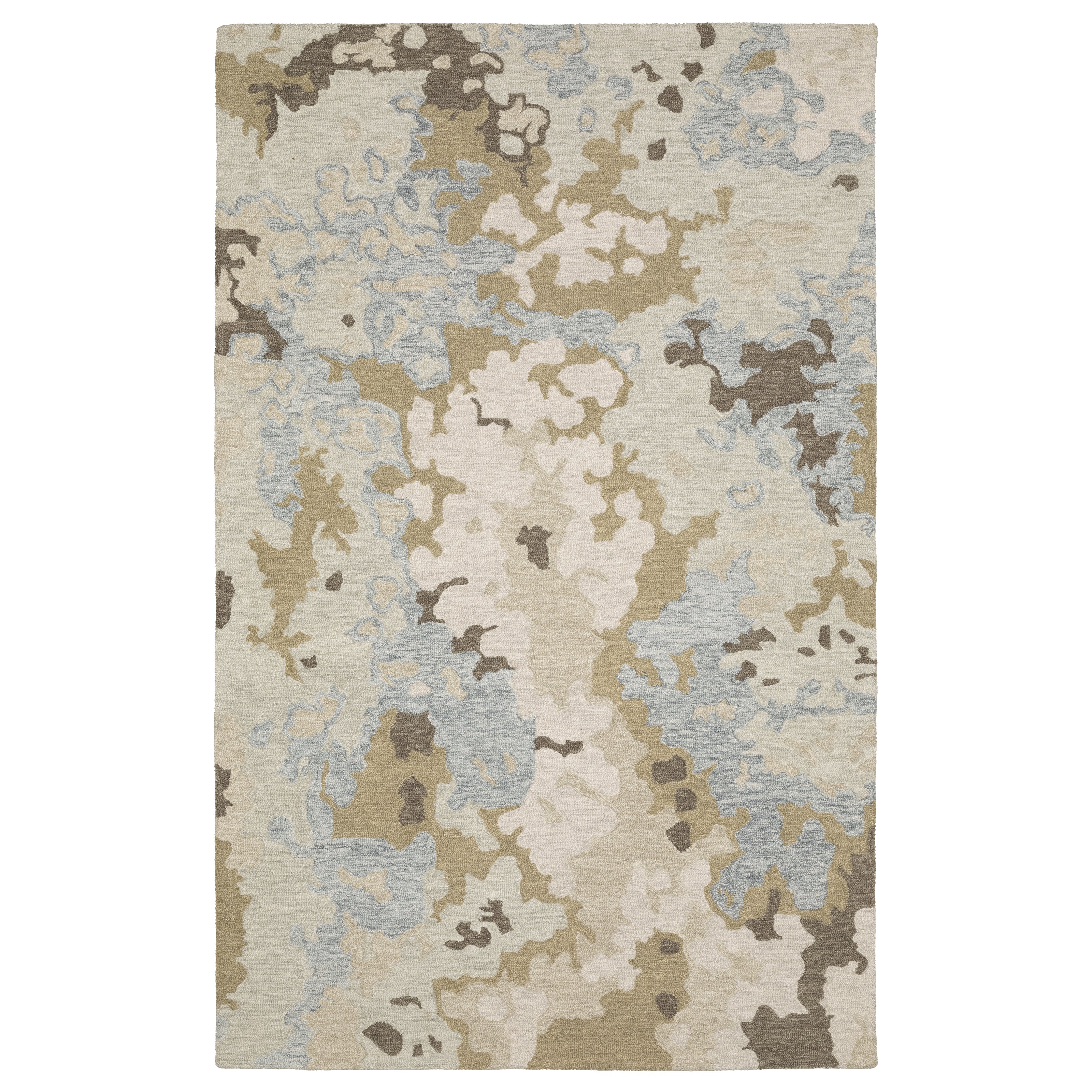 Kipton is a hand-tufted collection constructed of space dyed wool and features a dense, textural cut and loop pile. Designs recall the organic shifting and layering of natural elements over time and that idea is echoed in the softly saturated blue and green tones as well as warmer shades of copper and gold.