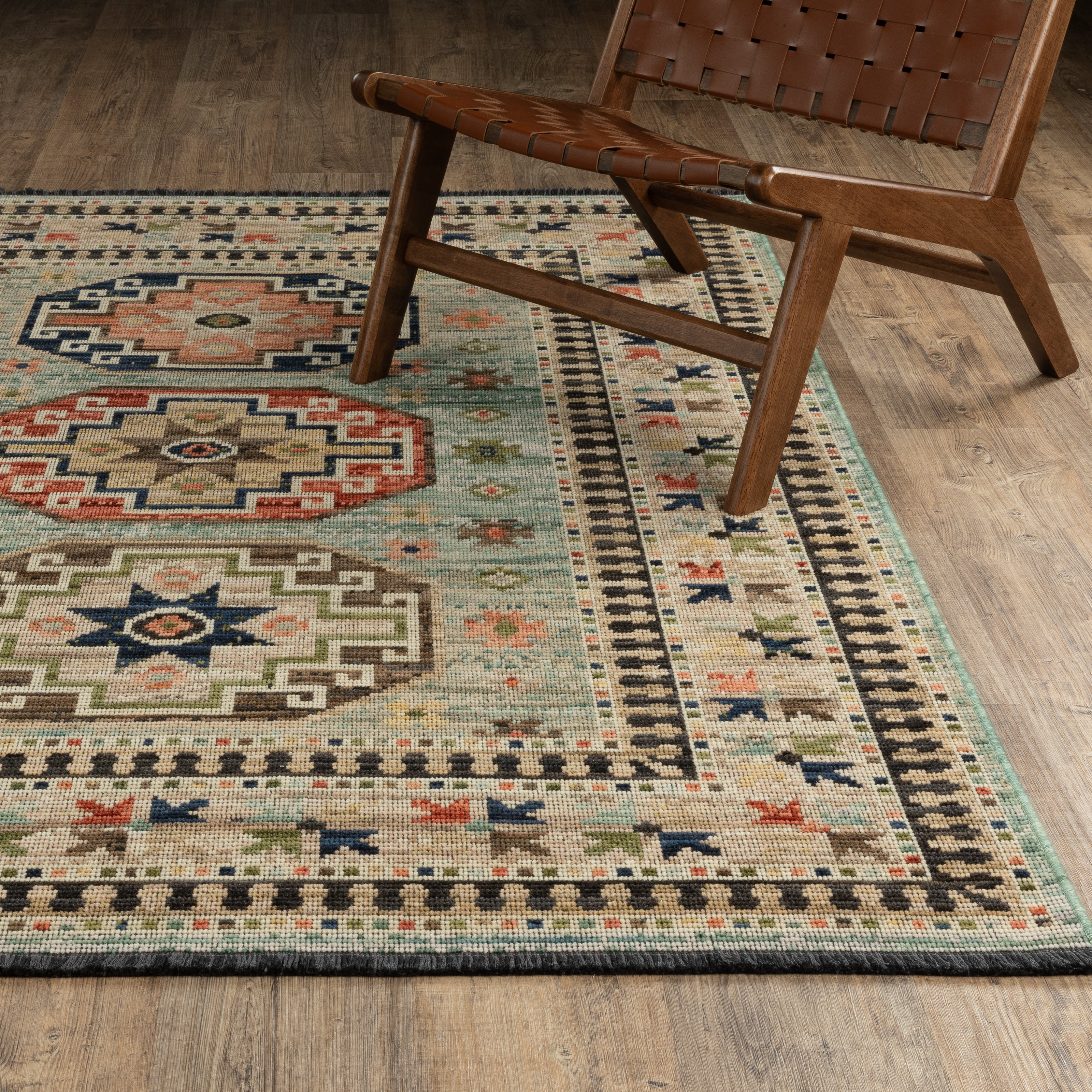 The Legacy collection showcases the artistry of space-dyed wool and nylon in a beautifully crafted area rug. Woven on an Axminster loom, the pieces offer exceptional quality and durability while maintaining the look of a hand-knotted rug through the use of zero pile as well as incorporated fringe. The saturated and textured jewel tones of sapphire, emerald and amethyst, as well as rich shades of crimson, gold and brown are wonderfully striking in contrast to the deep midnight shade of the expos