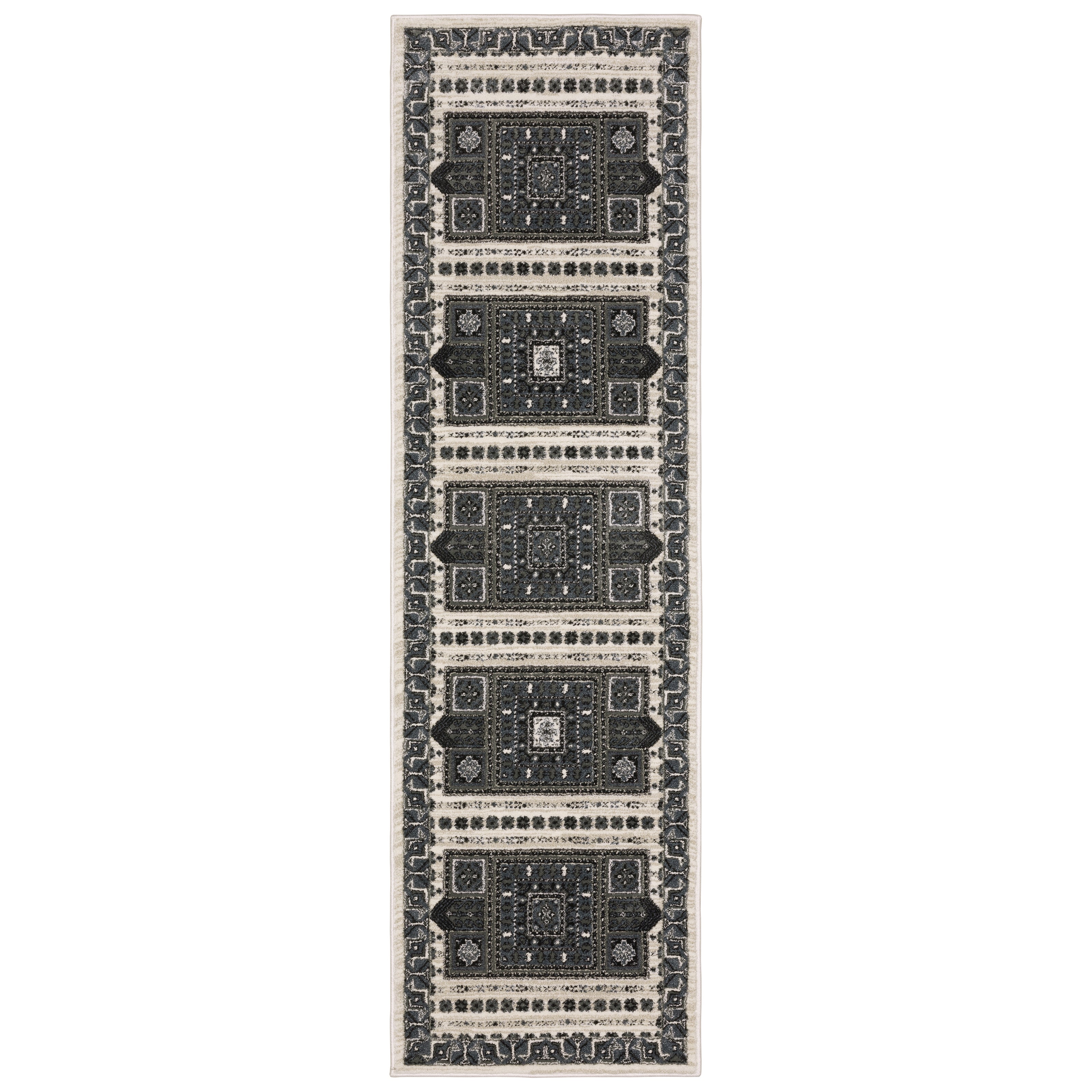 The Raylan collection features a range of design styles from classic Persian to global and geometric in contrasting tones of black and ivory with shades of soft blues, grays, and neutrals in-between. Raylan is power-loomed of multi-tonal, textured, soft polypropylene and twisted polyester shrink yarn. With its sophisticated high/low construction, Raylan will surely add refined dimension and visual interest to your space.