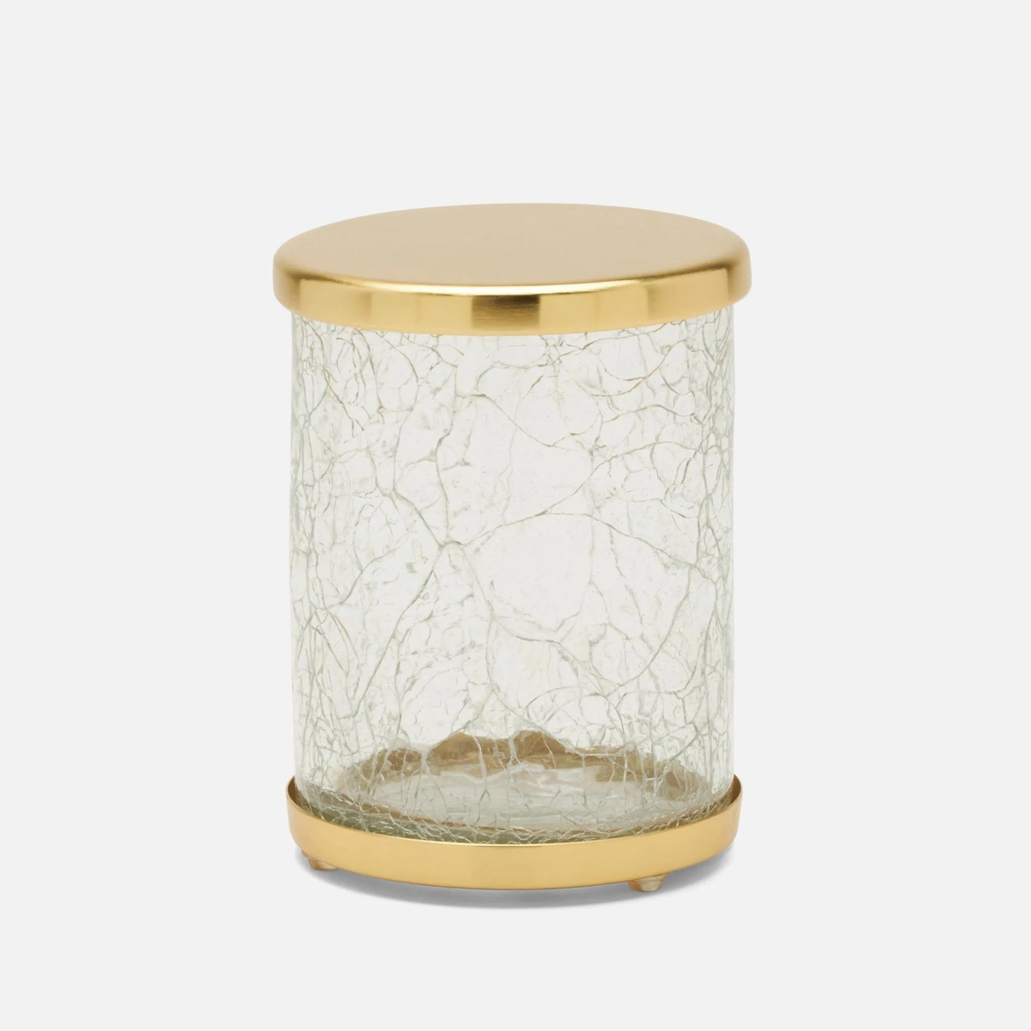 Subtly glamorous, our Pomaria bath collection brightens a bathroom with light-catching crackled glass accented in brushed Gold, brushed Silver, or dark bronze.