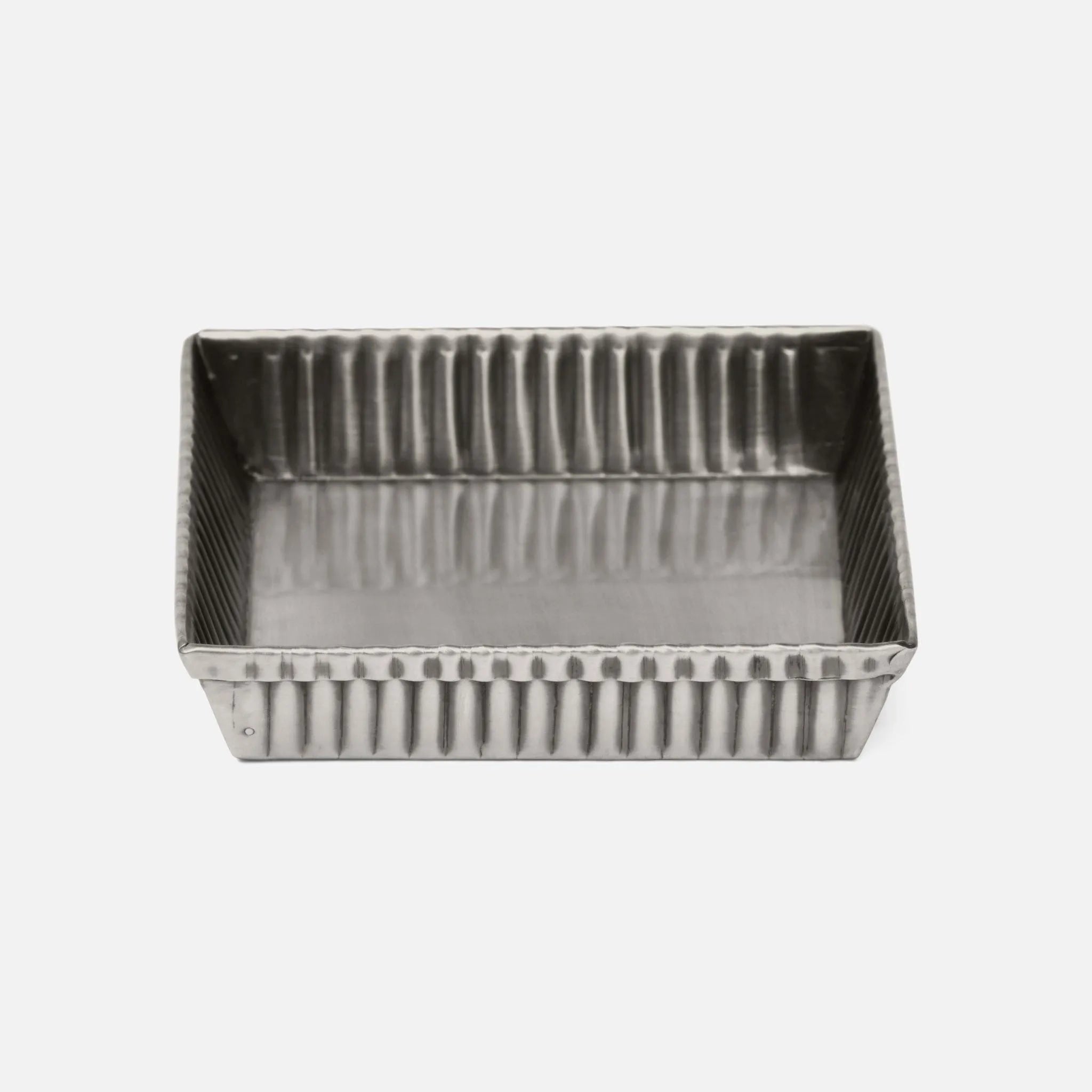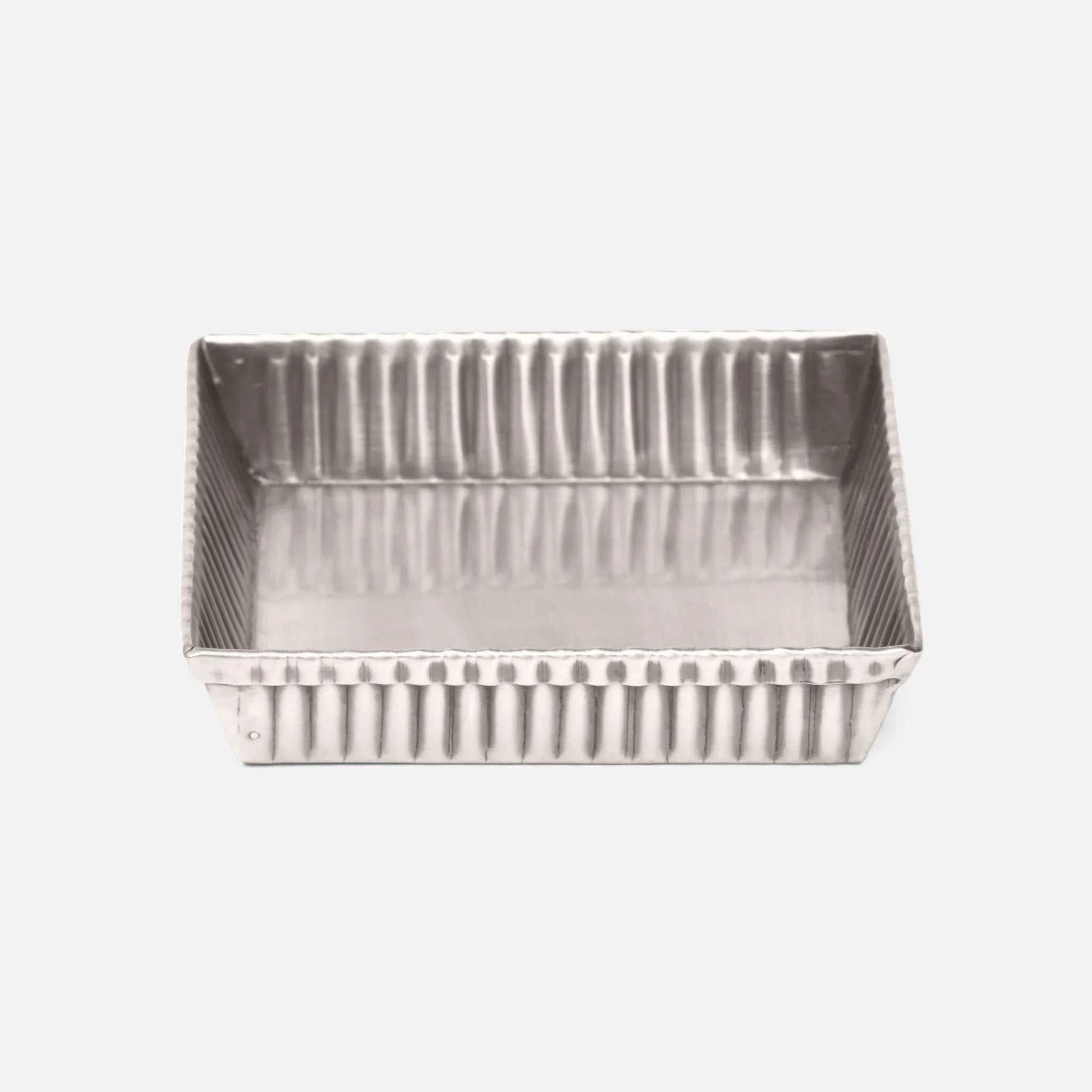 Antique-chic ribbed metal bath collection blending modern industrial with art deco glam.