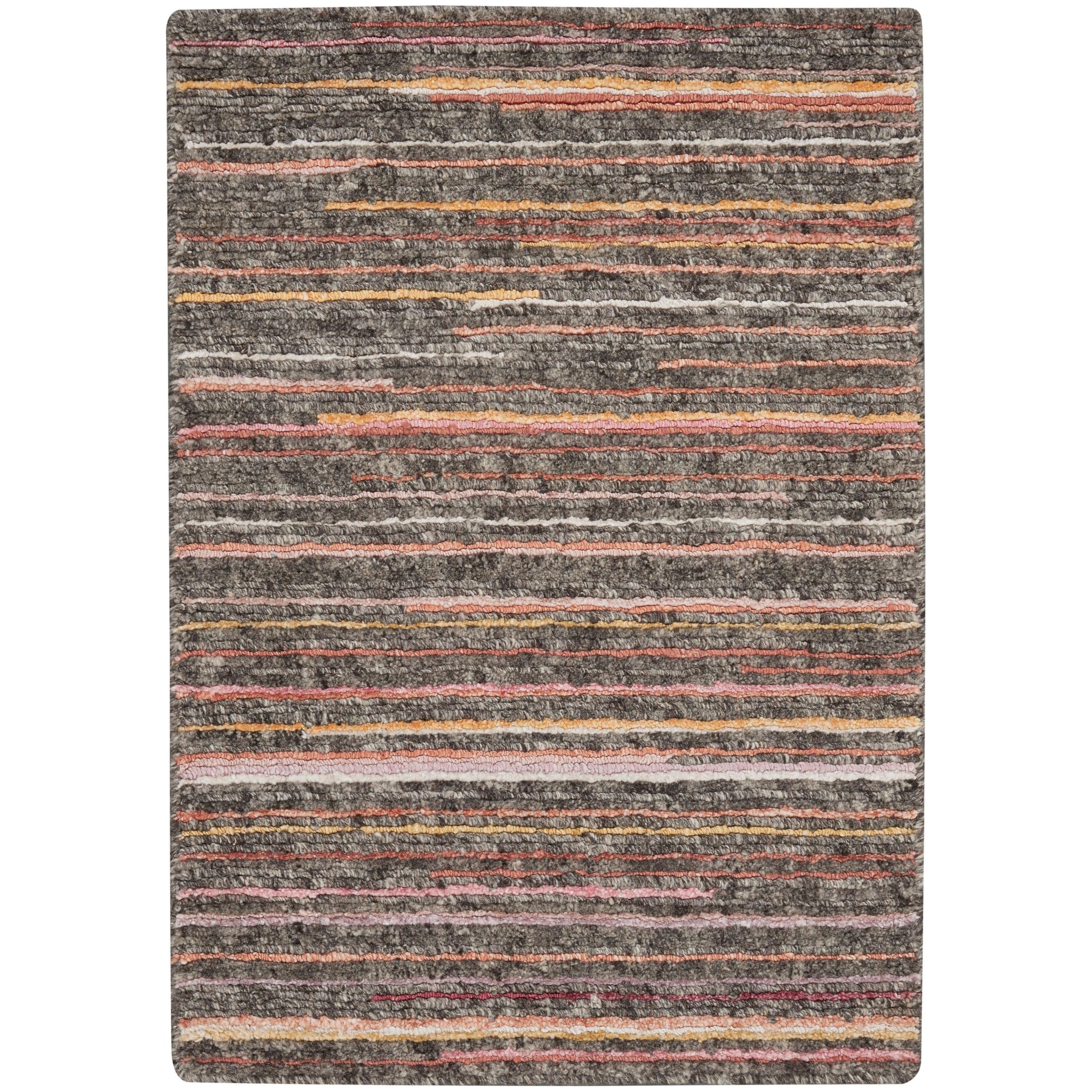 Elevate your home decor with the Plateau PAE01 Grey Flame area rug. Hand-knotted in a Tibetan-style, these rugs boast a unique texture and a blend of rich colors. The borderless design adds a touch of sophistication to any room, while the low-shed fiber and serged-edge finish ensure durability in high-traffic areas. The multi-tonal stripes and striations bring a cozy, rustic vibe to your space, whether it's eclectic, bohemian, transitional, contemporary, or modern. Add an artisanal flair to your living room, dining room, bedroom, foyer, or playroom with the exquisite craftsmanship of the Plateau collection.