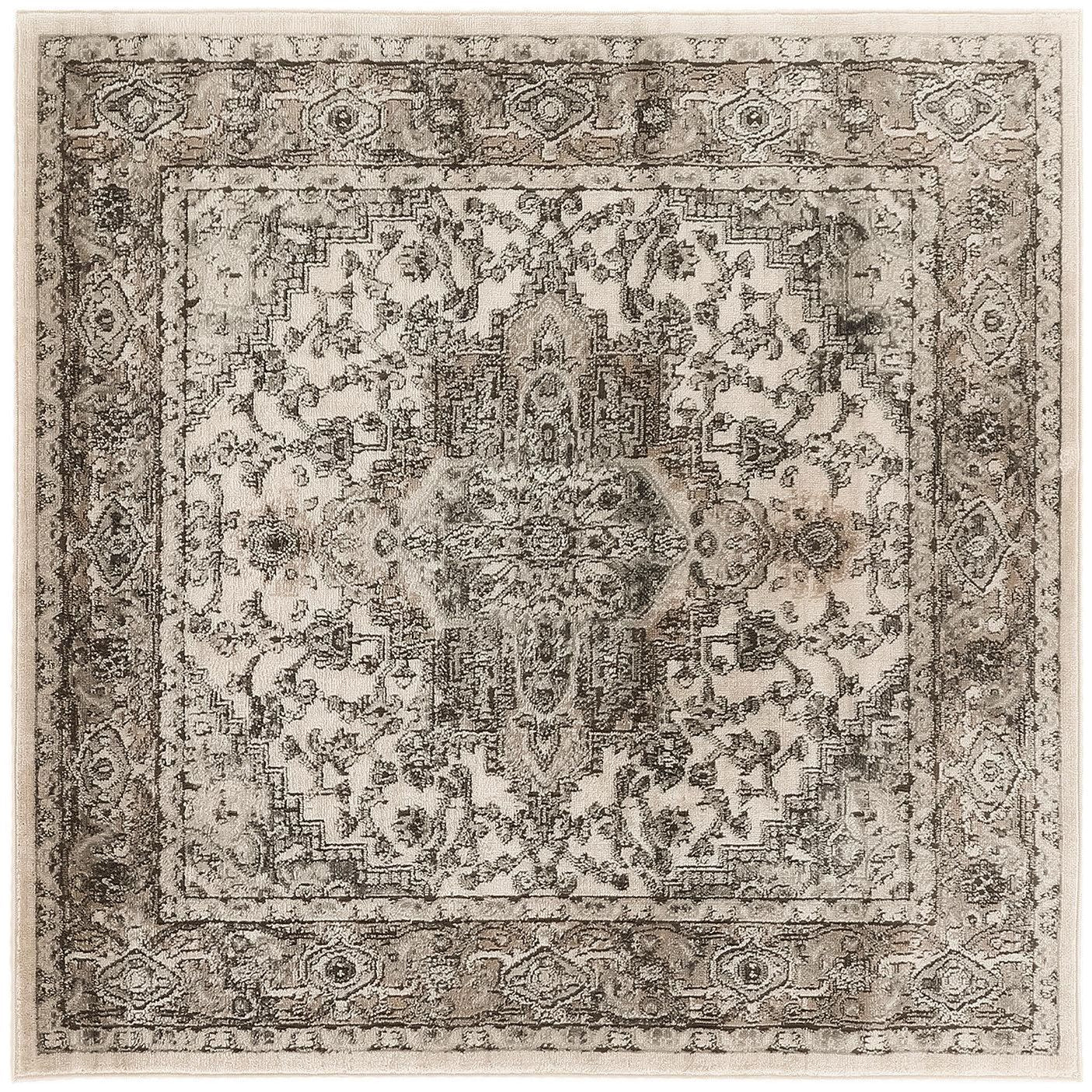 Introducing Quarry QUA05 Ivory Grey, a contemporary twist on traditional style for your home. This vintage-inspired rug from the Quarry Collection features a timeless Persian floral design in shades of ivory and grey, creating a sophisticated look with a touch of modern flair. The subtle fade gives it a charming, lived-in appearance that will enhance any room in your home.