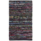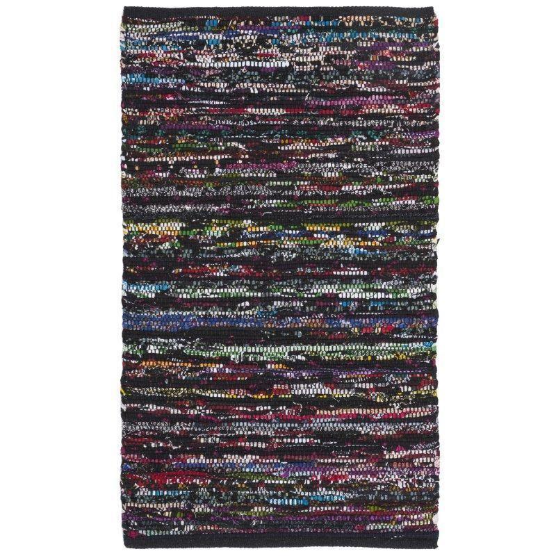 Rag Rug RAR250G in Black Red, a modern twist on a classic American craft. This chic cotton pile collection brings a pop of trendy colors to the traditional rag rug style, making it ideal for casual spaces. Each rug is handwoven by skilled artisans in Indian villages, adding a touch of authenticity and character to your home decor.