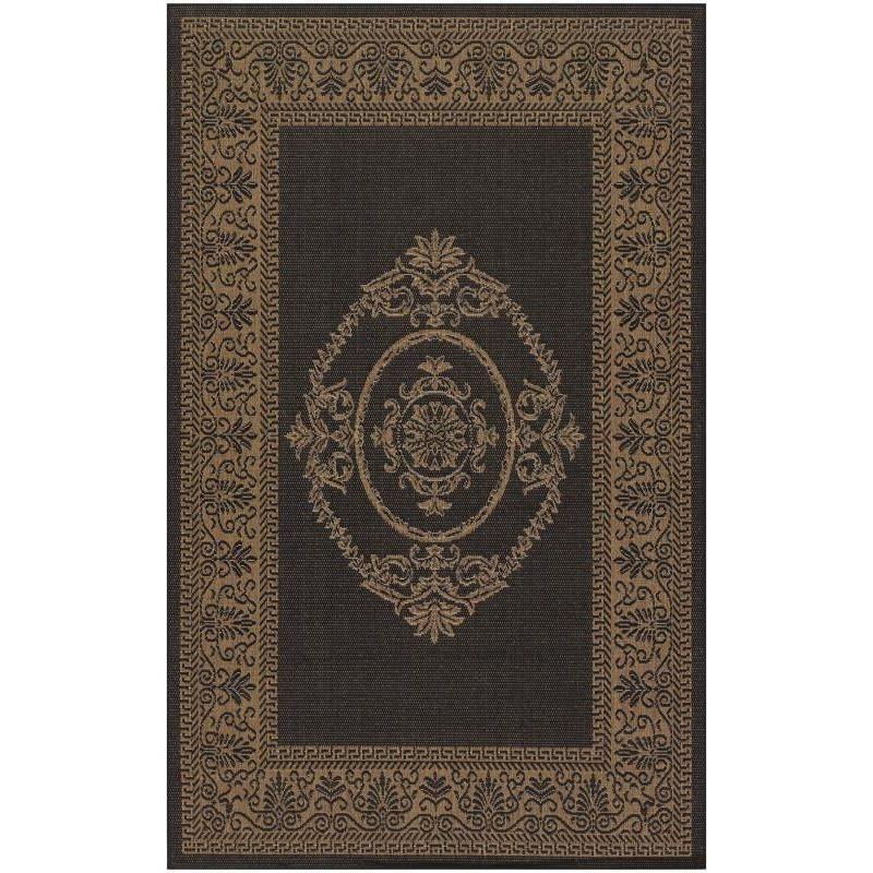 Introducing our exquisite Recife Antq Medallion Black Cocoa rug, crafted from 100% Fiber-Enhanced Courtron™ Polypropylene. Its structured flatwoven construction makes it a versatile choice for both outdoor and indoor settings. This rug is designed to resist mold and mildew, ensuring long-lasting durability. Additionally, it is UV stabilized to maintain its rich color and integrity under sunlight exposure.