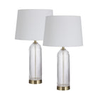 When you see these Ocala table lamps, we think you'll agree that the only thing better than a stunning lamp is a pair of stunning lamps. Loaded with classic appeal, they deliver a high-end look to any traditional interior. Each one features a fluted glass base that's simultaneously ultra-trendy and timeless, helping these lamps hold a majestic presence anywhere they sit. You'll love the way light bounces off the antique brushed brass plated accents while off-white linen cylinder shades diffuse a soft dimmable glow throughout the room. This perfect paring would look great on a dining room buffet, as bedroom table lamps or living room table lamps for a bold impact with enduring style.