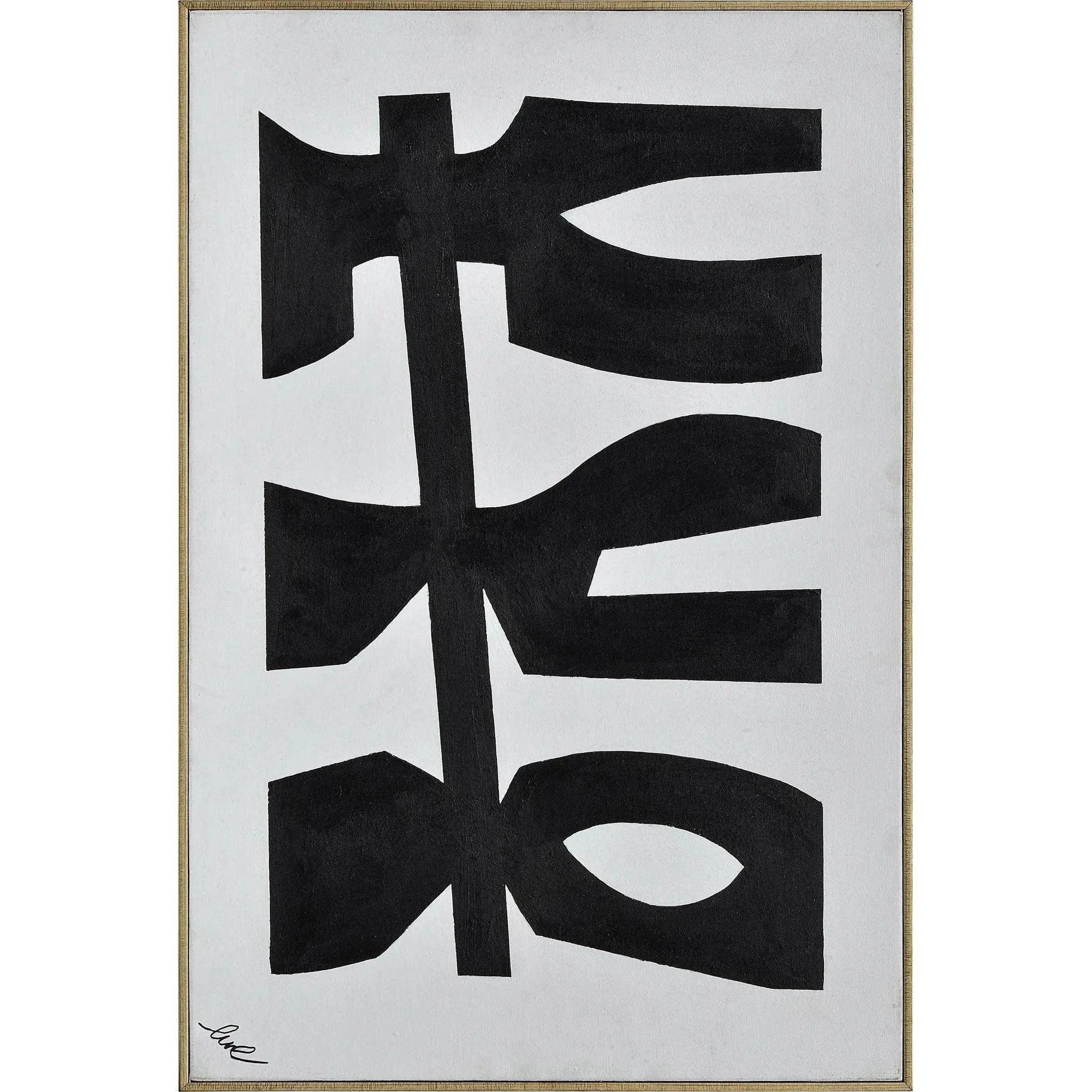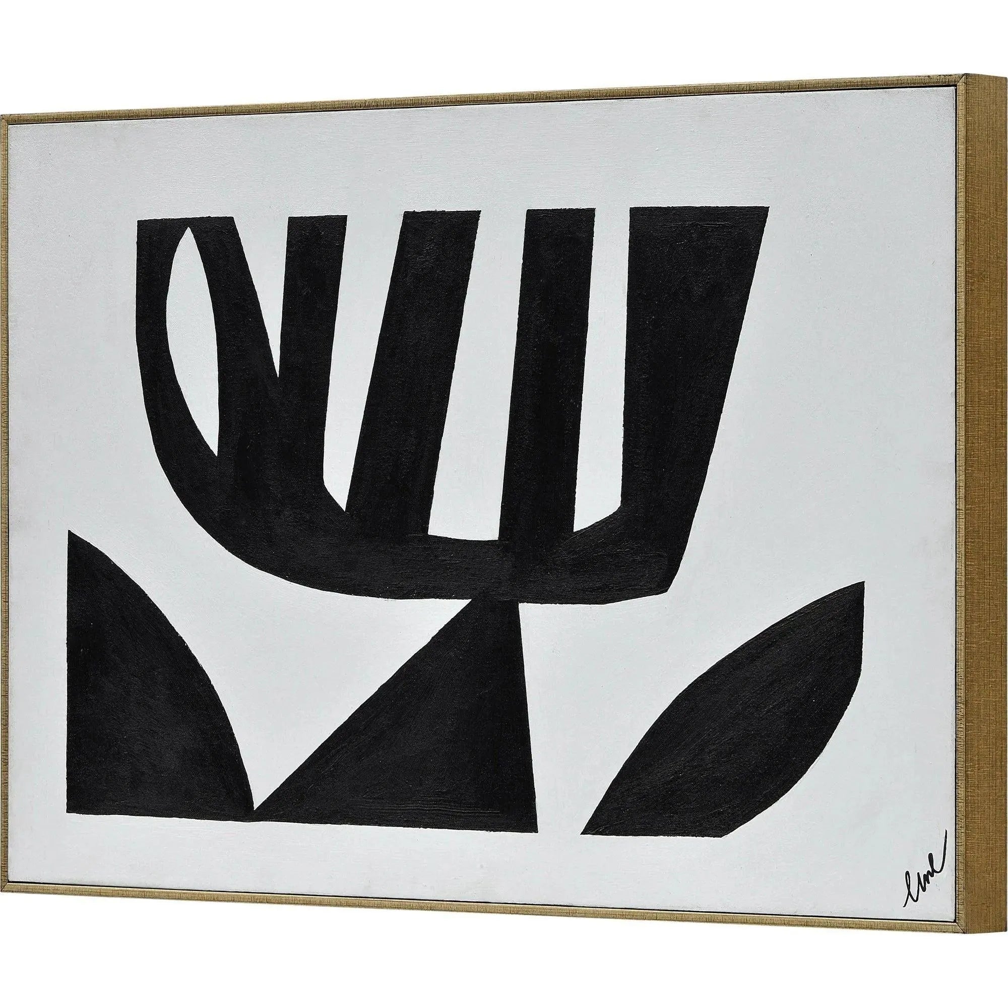 This set of graphic paintings on cotton canvas add a bold touch to the mid-century modern living space. With strong black lines creating shapes akin to leaves on a vine, their vivid designs have a familiar quality. Hang them together or separately within the interior, for a dose of personality.
