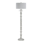 Elevate any interior with the classic style of this floor lamp. Designed with a lathed-look and hand-painted white wood texture, it's perfect for any modern or transitional living room, dining room or office. Simply give one of its pull chains a tug to enjoy the ambient glow given off through its off-white linen drum shade to set the perfect vibe.