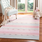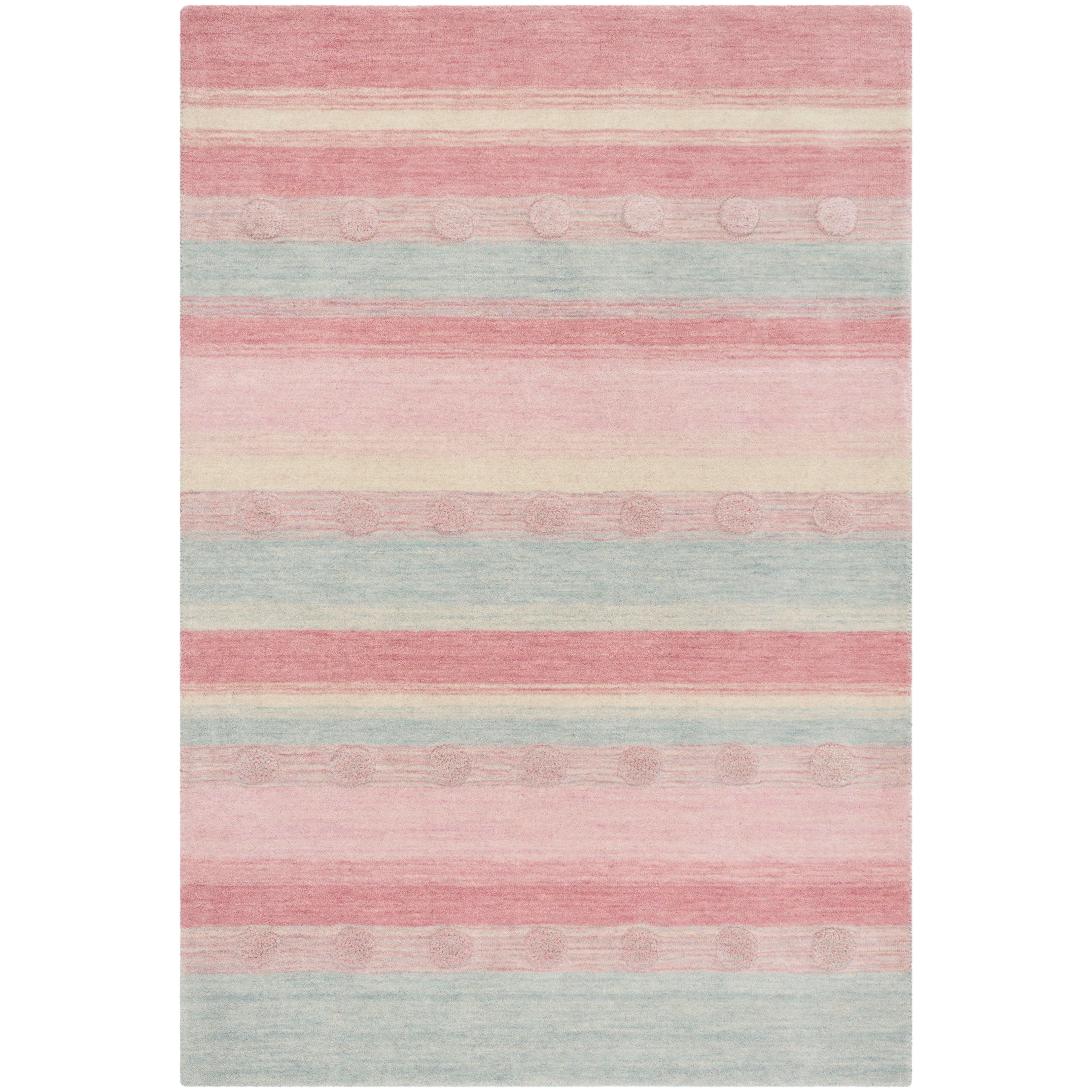 Safavieh Kids SFK801M in Light Blue Pink, a charming addition to any child's play area or bedroom. Hand-tufted with premium New Zealand wool, this rug offers a lush and warm feel underfoot, perfect for little ones to play and relax on. The soft colors of light blue and pink create a soothing atmosphere while adding a playful touch to the room's decor.