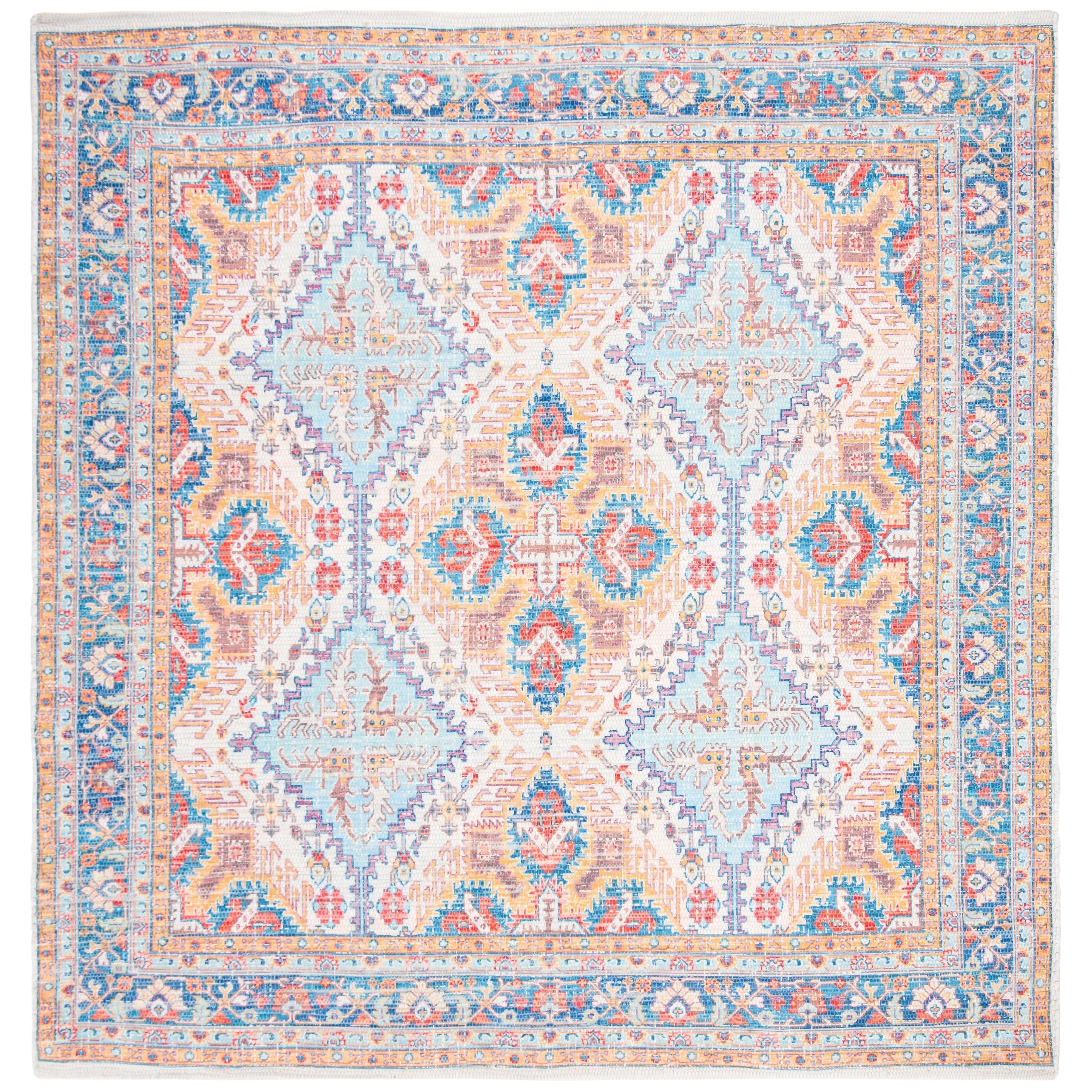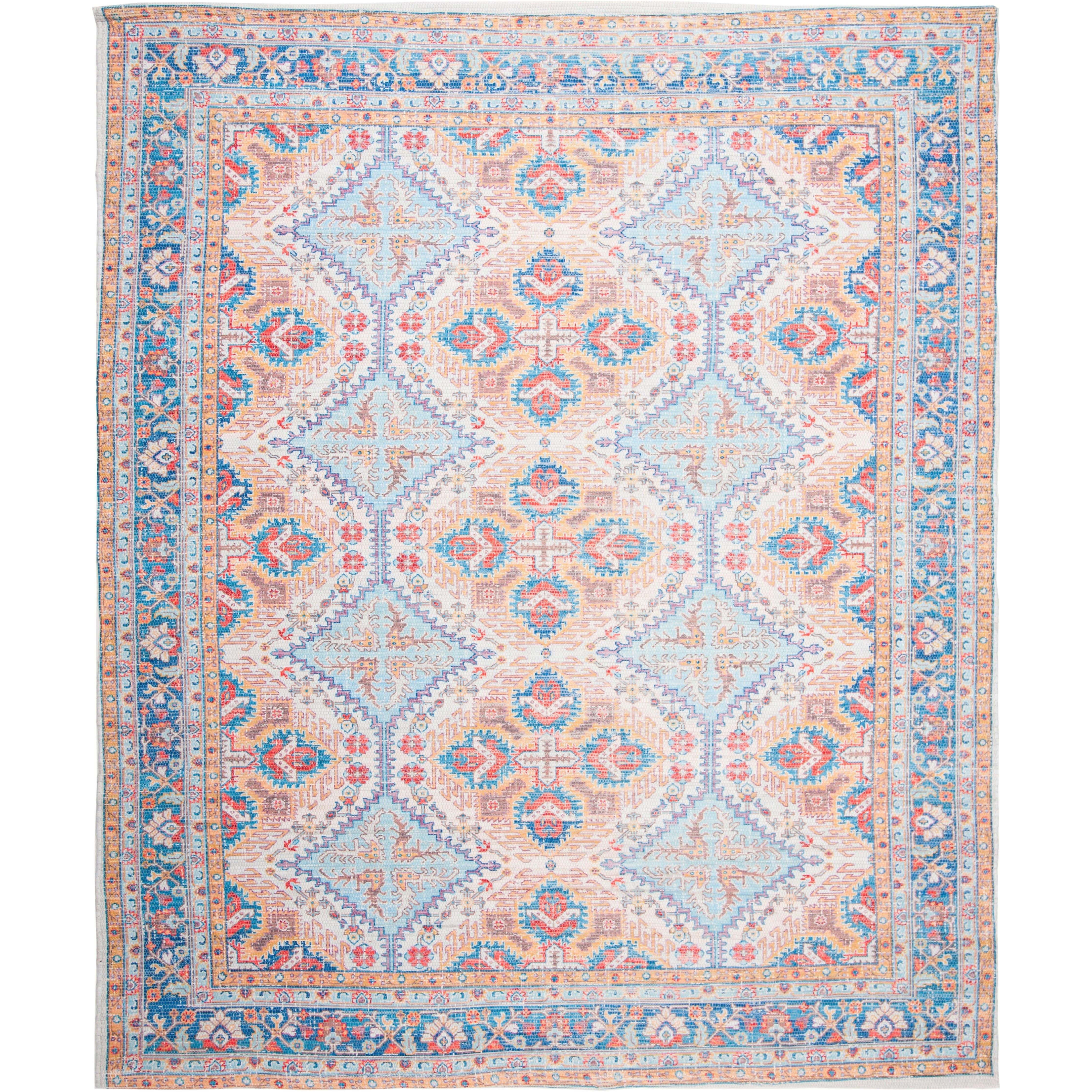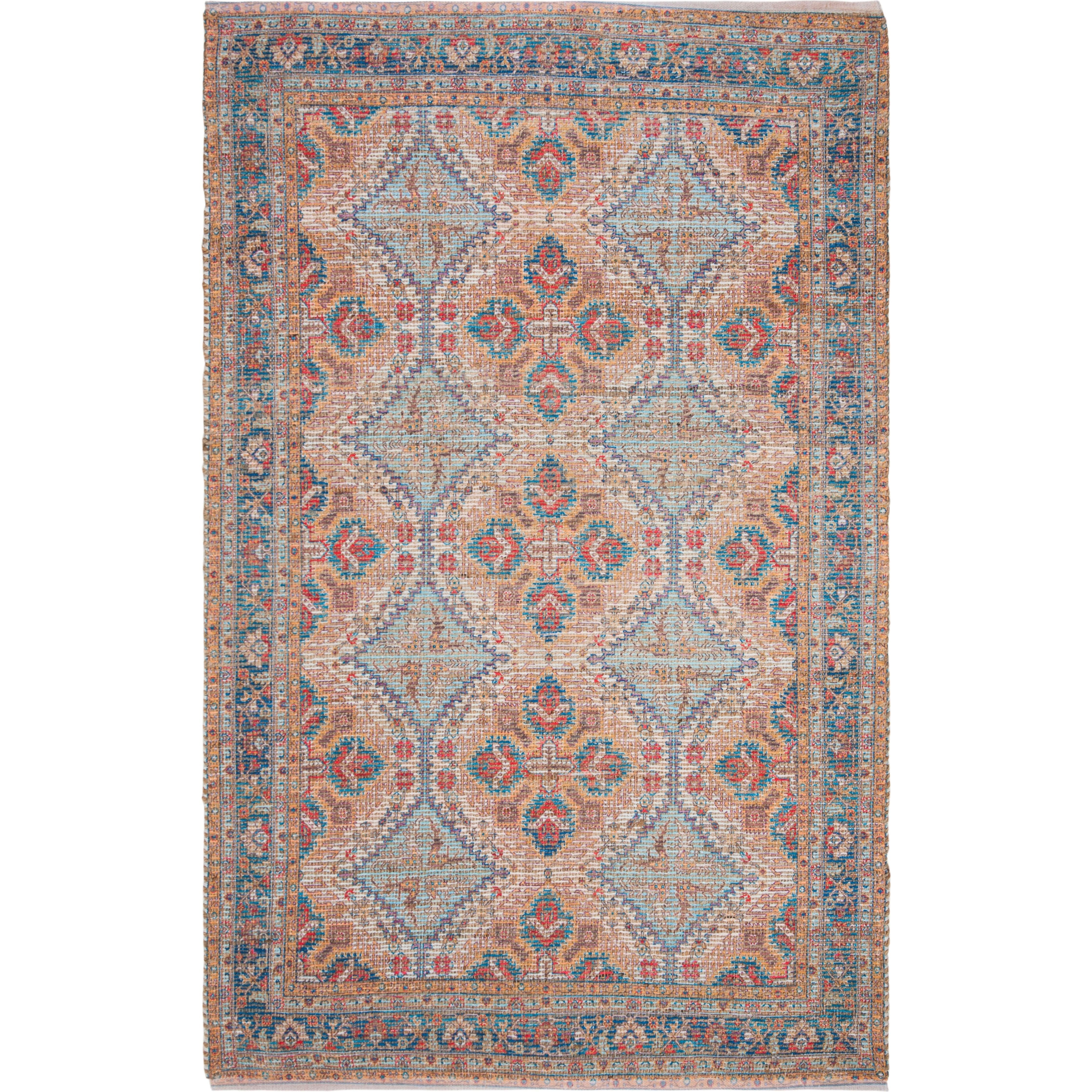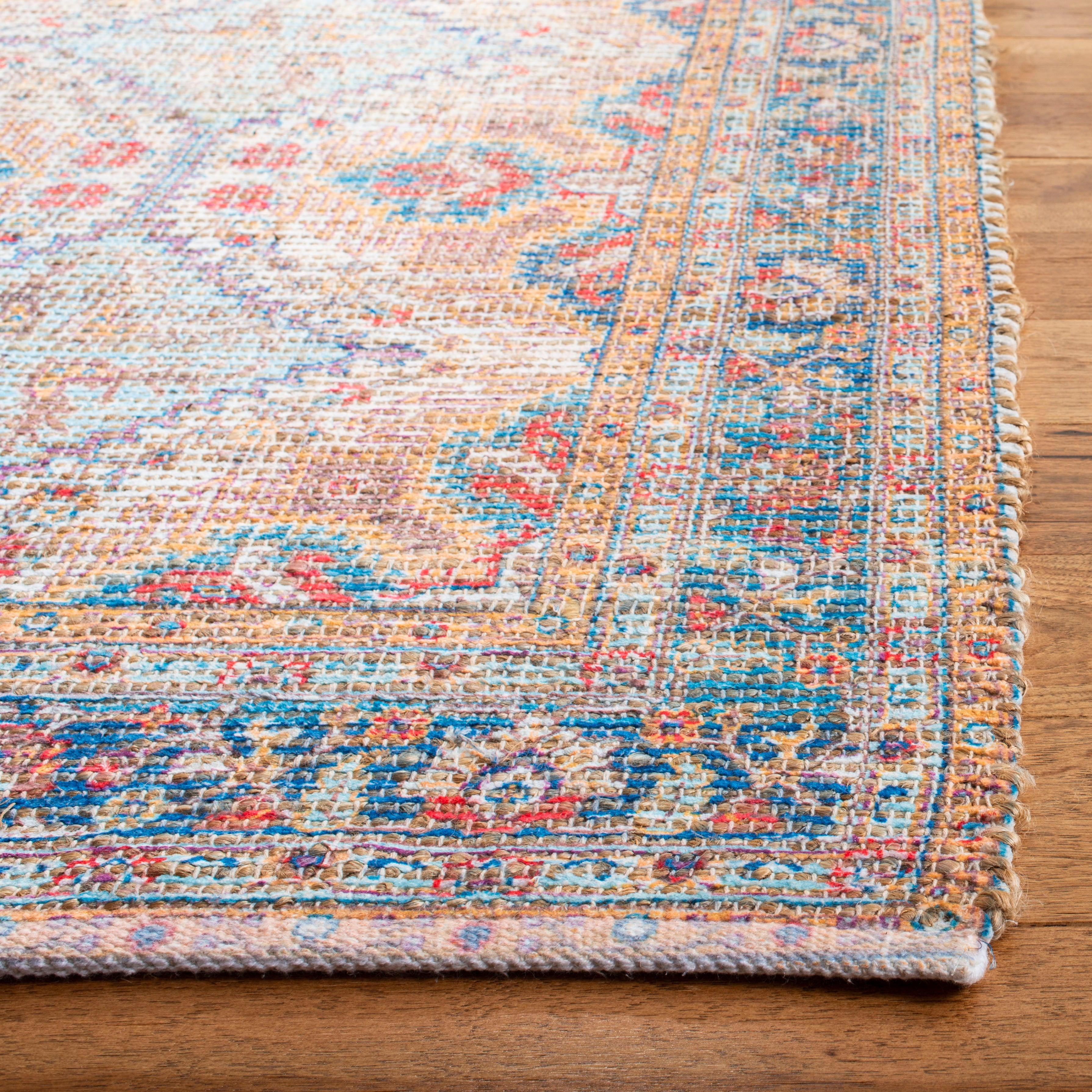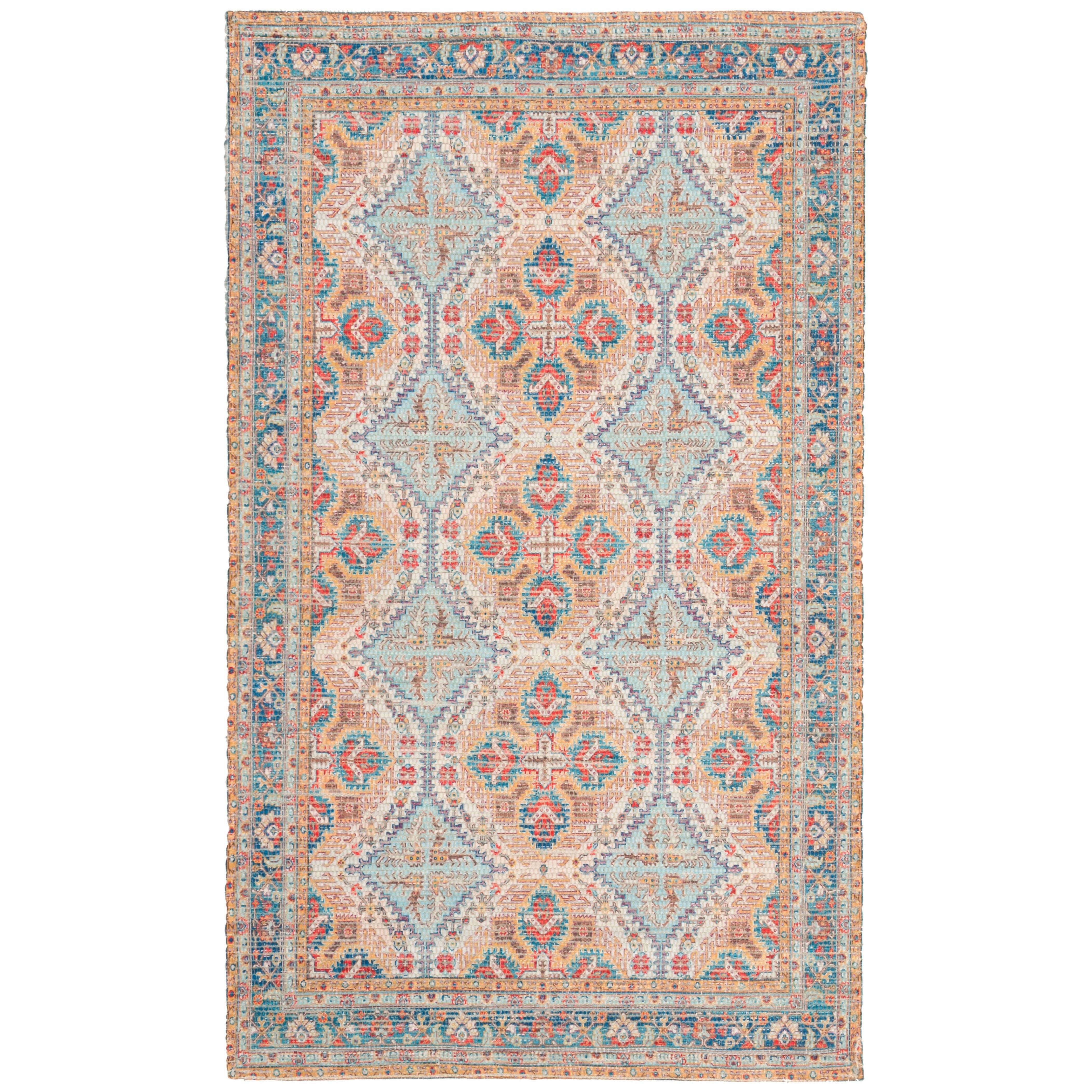stunning Saffron SFN511P Rust Blue area rug, perfect for adding a pop of color to your space. The exquisite designs and vibrant color palette of the Saffron collection are bound to ignite your creativity and elevate any room's ambiance. Crafted with breezy cotton fibers in a hand-loomed flat weave style, this rug offers a touch of relaxation to your space.