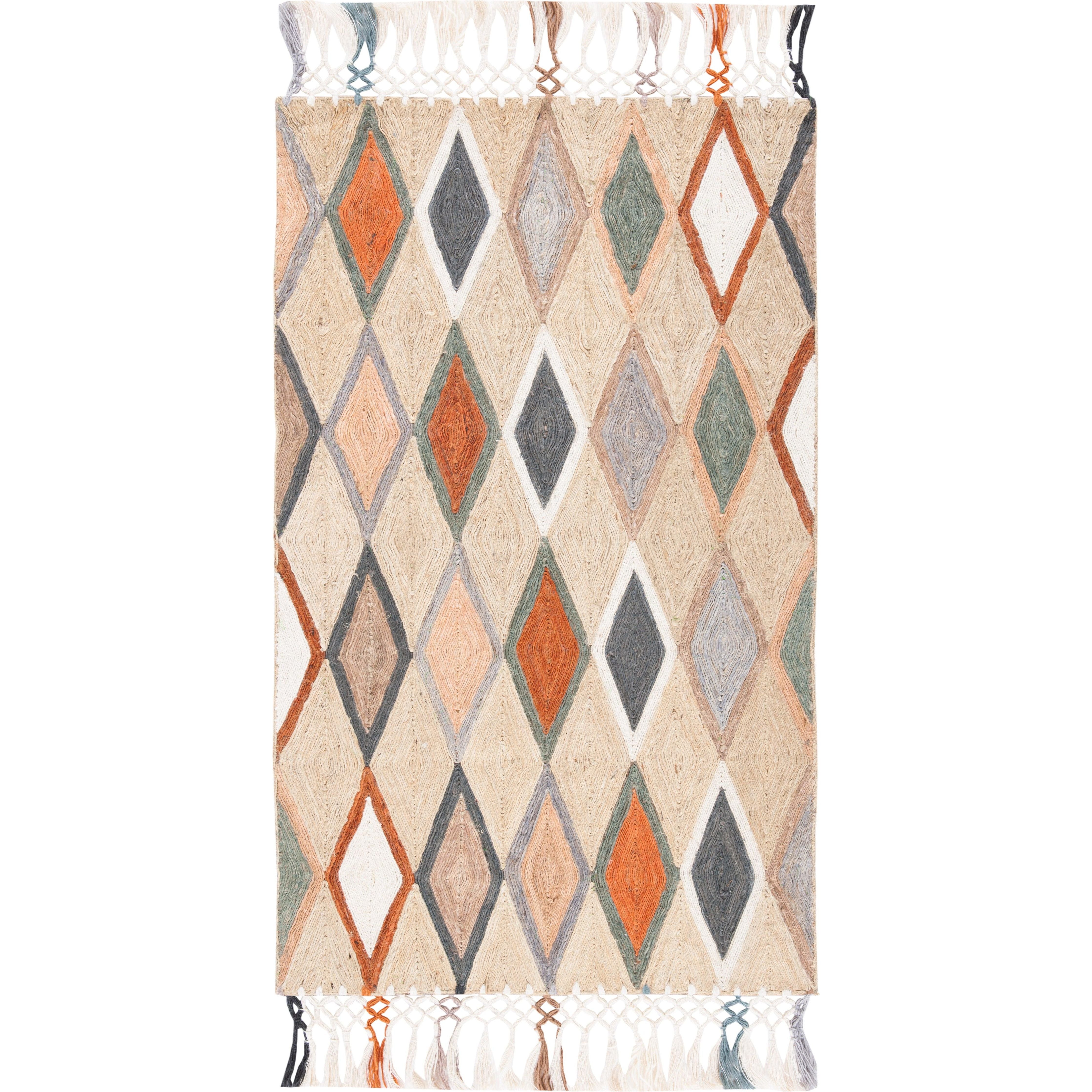 Elevate your home decor with the Sahara SAH457B rug from SAFAVIEH's Sahara Collection. Hand-tufted by skilled artisans, this rug features vibrant geometric Moroccan-inspired patterns that bring a touch of contemporary boho style to any room. Whether placed in a dining area, kitchen nook, or living room, this rug creates a relaxed and chic ambiance with its approximate thickness of 0.5 inches.
