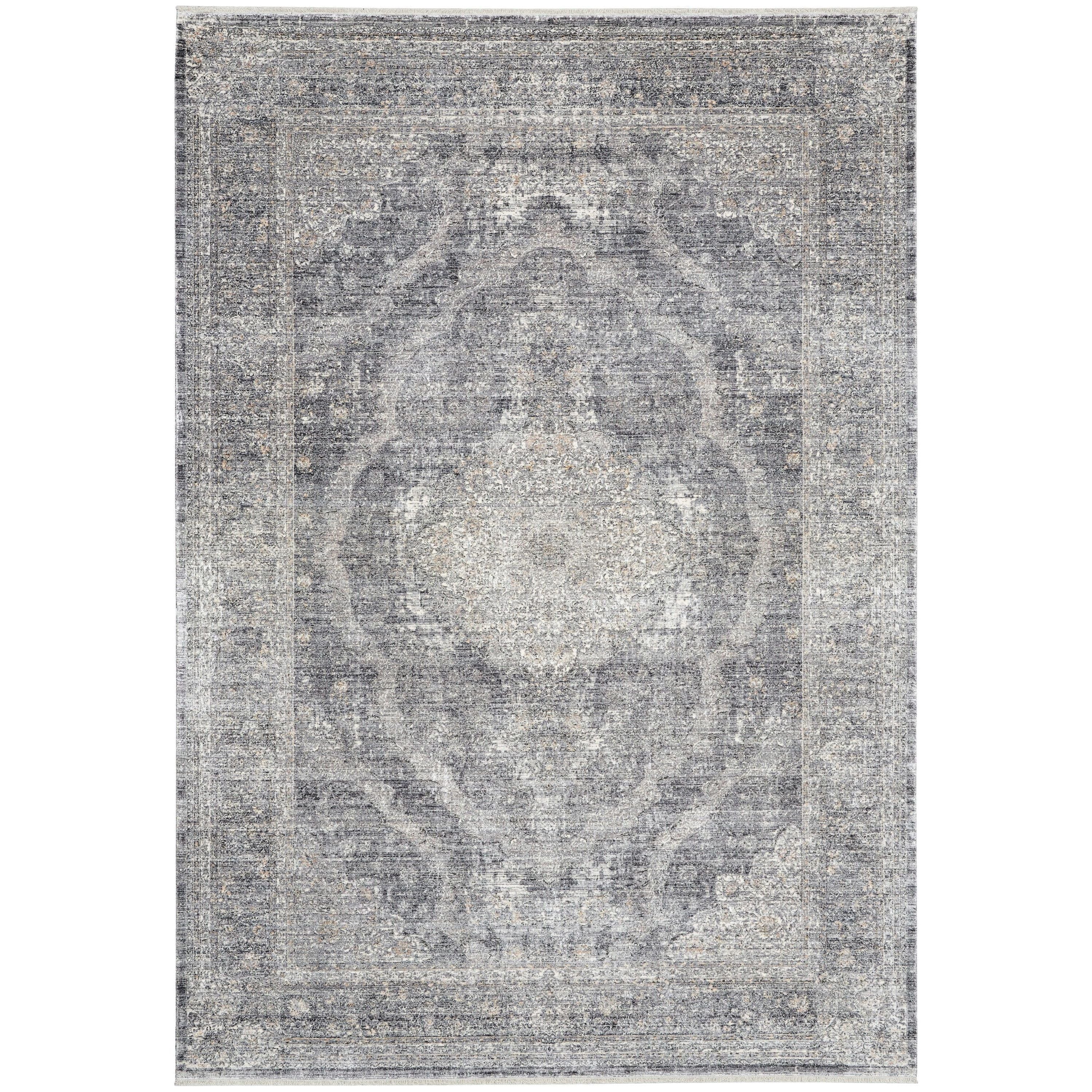 Starry Nights STN05 Charcoal Creme rug, a luxurious piece inspired by ancient Persian opulence. This collection pays homage to traditional area rugs with a vintage charm that evokes the allure of centuries past. The classic framed patterns and intricately carved designs are enhanced by elegant color pairings, giving the rug a faded aesthetic reminiscent of a cherished family heirloom.