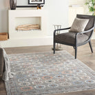 enchanting Starry Nights STN09 Grey Navy rug, a timeless piece inspired by ancient Persian opulence. This exquisite collection pays homage to traditional area rugs with a vintage charm that evokes the elegance of bygone eras. The intricate patterns and framed designs exude a sense of sophistication, while the faded color palette creates a nostalgic feel akin to a cherished family heirloom. A delicate surface shimmer adds a touch of allure, making this rug truly come alive in any space.