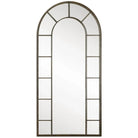 This Stately, Arched Mirror Features An Aged Black Metal Frame With Light Rust Distressing.