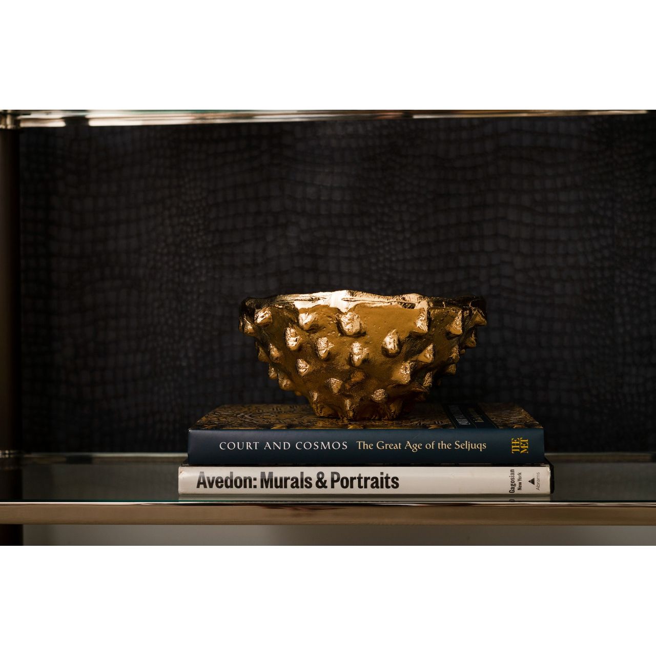 Our Kiwano Bowl sparks the imagination and serves as a unique ornament for side tables, consoles, or as a centerpiece. Hand cast in metal with a glittering brass finish, the Kiwano feels like an otherworldly treasure, though it pulls inspiration from organic shapes and textures. Its exterior is outfitted in an energetic pattern of gilded spurs, an eye-catching adornment that recalls the shell of an exotic animal, and allows the bowl to stand at a range of angles. Evidence of its handcrafted artistry can be found in its imperfect edges and raw interior finish, which together give the piece a truly-one-of-a-kind allure. Use it to display fruit or flowers, or as a striking vessel to drop your keys in an entryway.