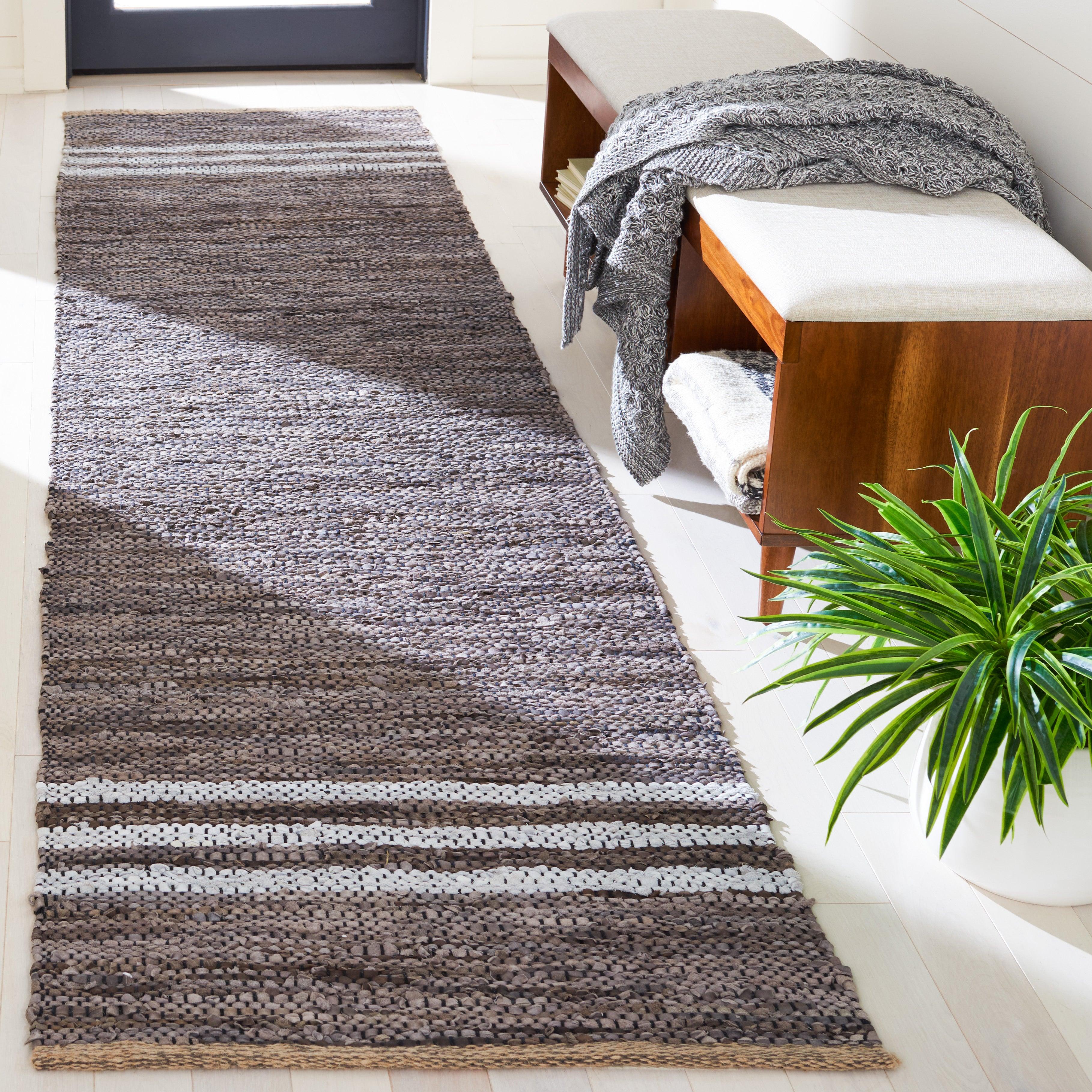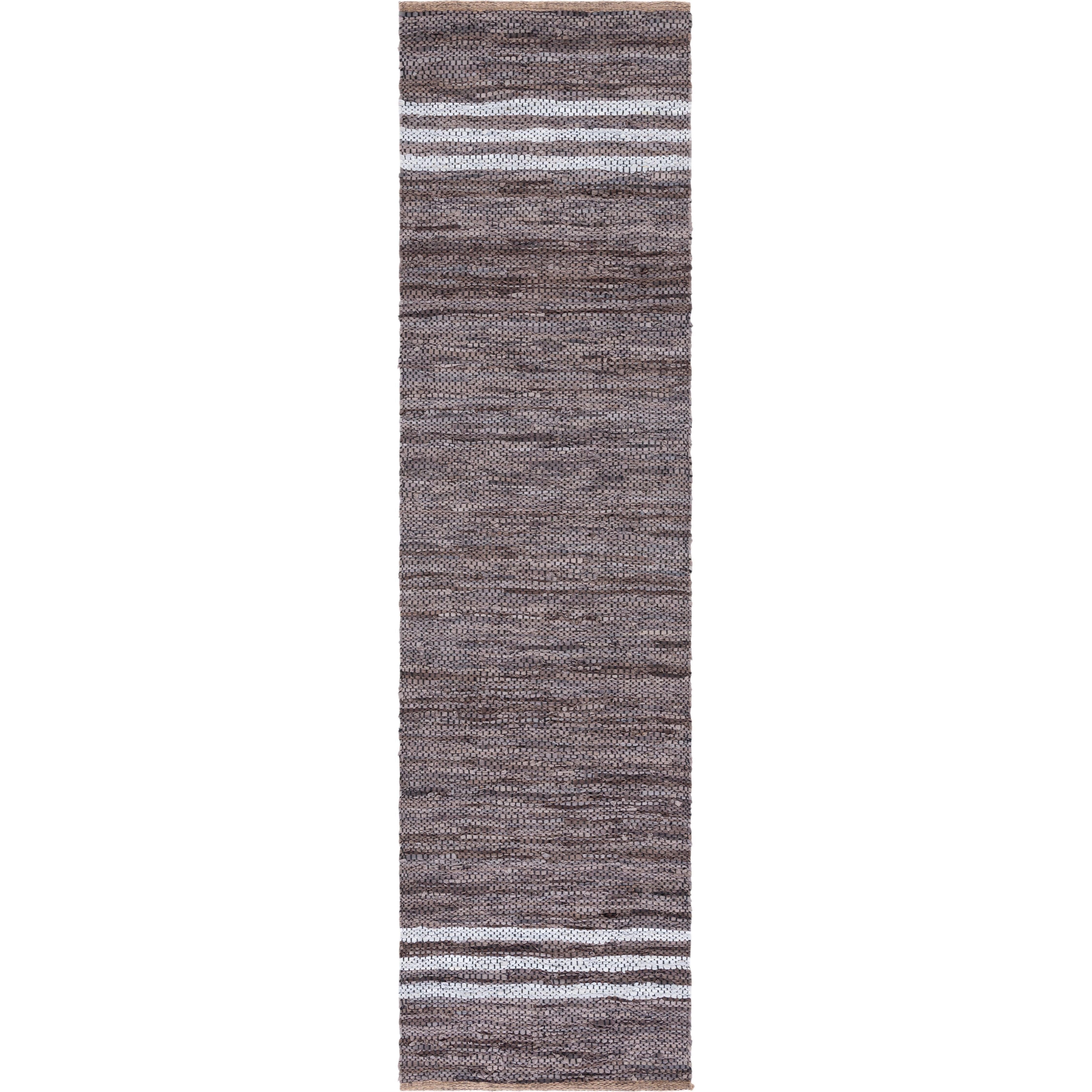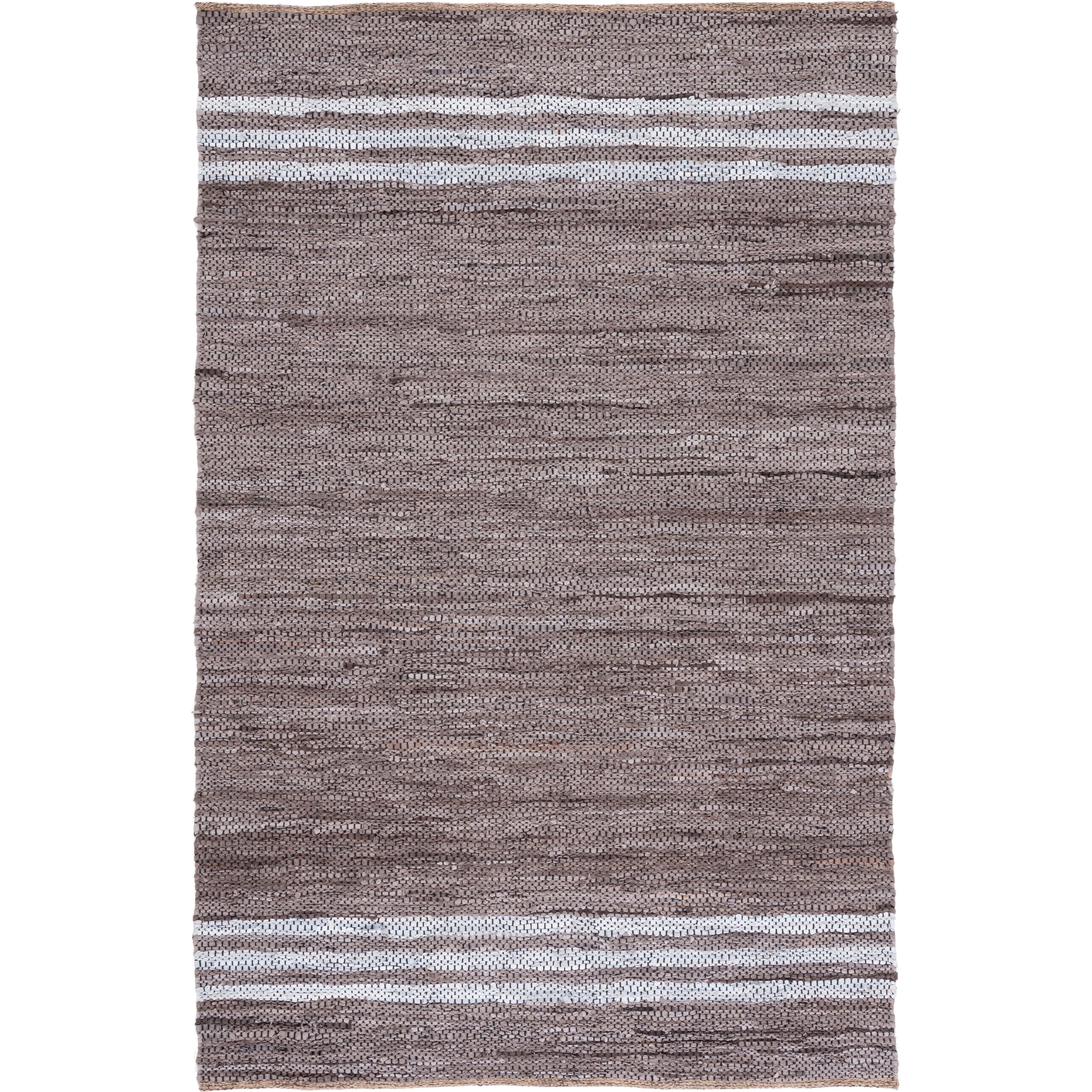 Vintage Leather VTL400G, a chic addition to your modern decor. These unique leather rugs offer a tactile experience with their genuine leather strips woven into captivating flat weave patterns. The earthy hues add warmth and style to any room, creating a sophisticated ambiance.