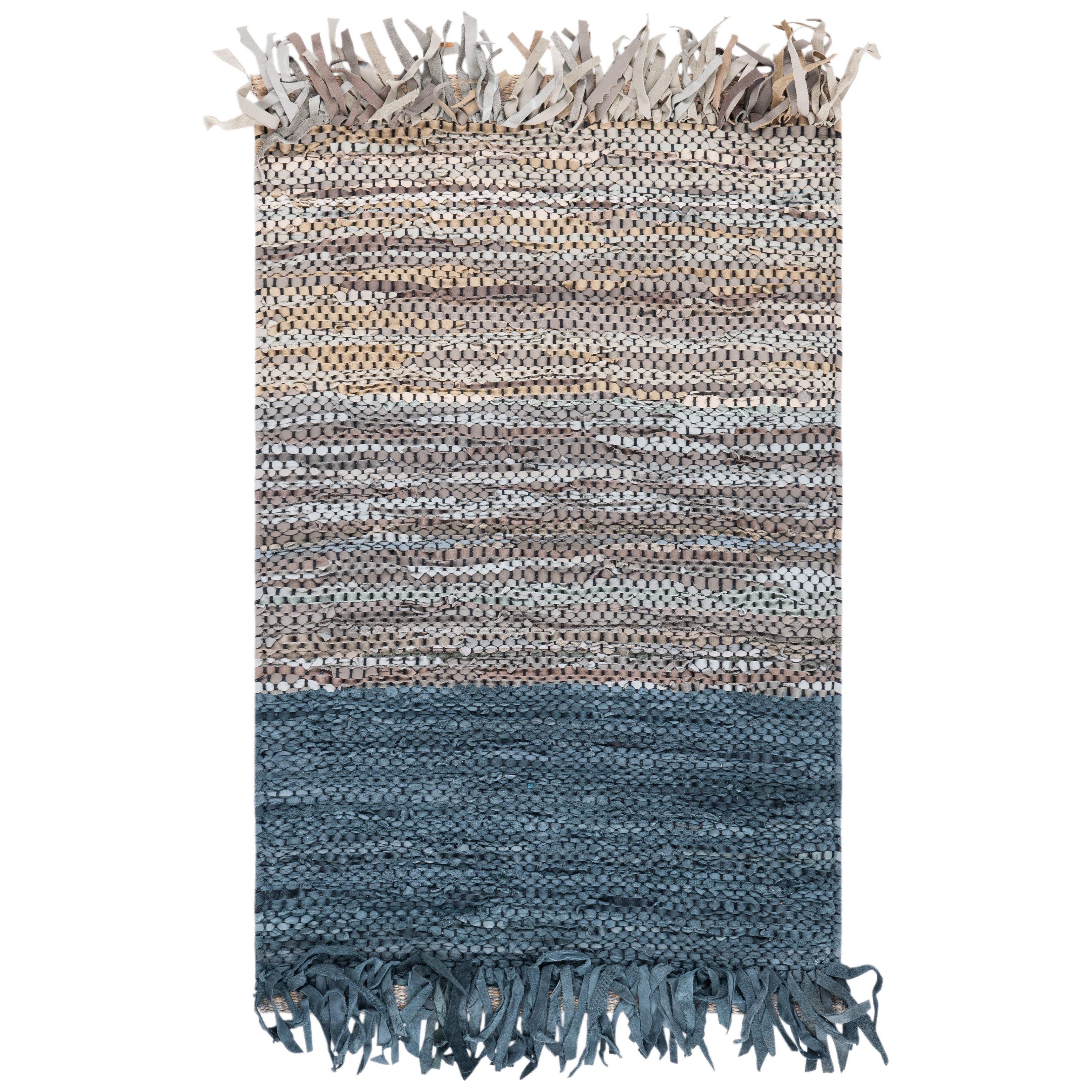 Vintage Leather VTL401M, a stunning addition to any modern decor. These vintage leather rugs are designed to elevate your space with their genuine leather ribbons, textured flat weave patterns, and earthy hues. With a nod to traditional cowhide rugs, these pieces add a touch of edgy elegance to contemporary interiors. The rug boasts an approximate thickness of 0.375 inches, providing both style and comfort.