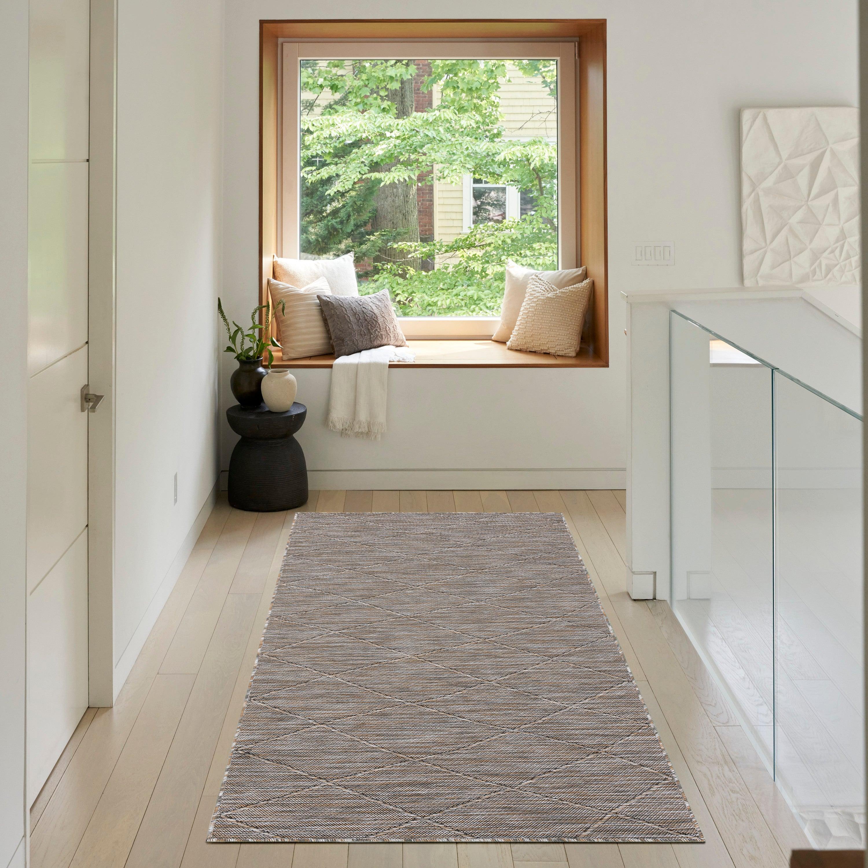 Washable Solutions WSL01 Grey Mocha outdoor rug from our sophisticated collection. These versatile area rugs effortlessly blend style and practicality, making them perfect for high-traffic indoor areas or casual outdoor spaces. Crafted from durable polypropylene with a soft texture, these rugs are easy to clean, do not shed, and can be conveniently folded for storage. Each rug is finished with a non-skid backing for safety and floor protection. Cleaning is a breeze - just toss it in the washing machine and air dry. For larger sizes (8 x 10 and above), a commercial washer is recommended.