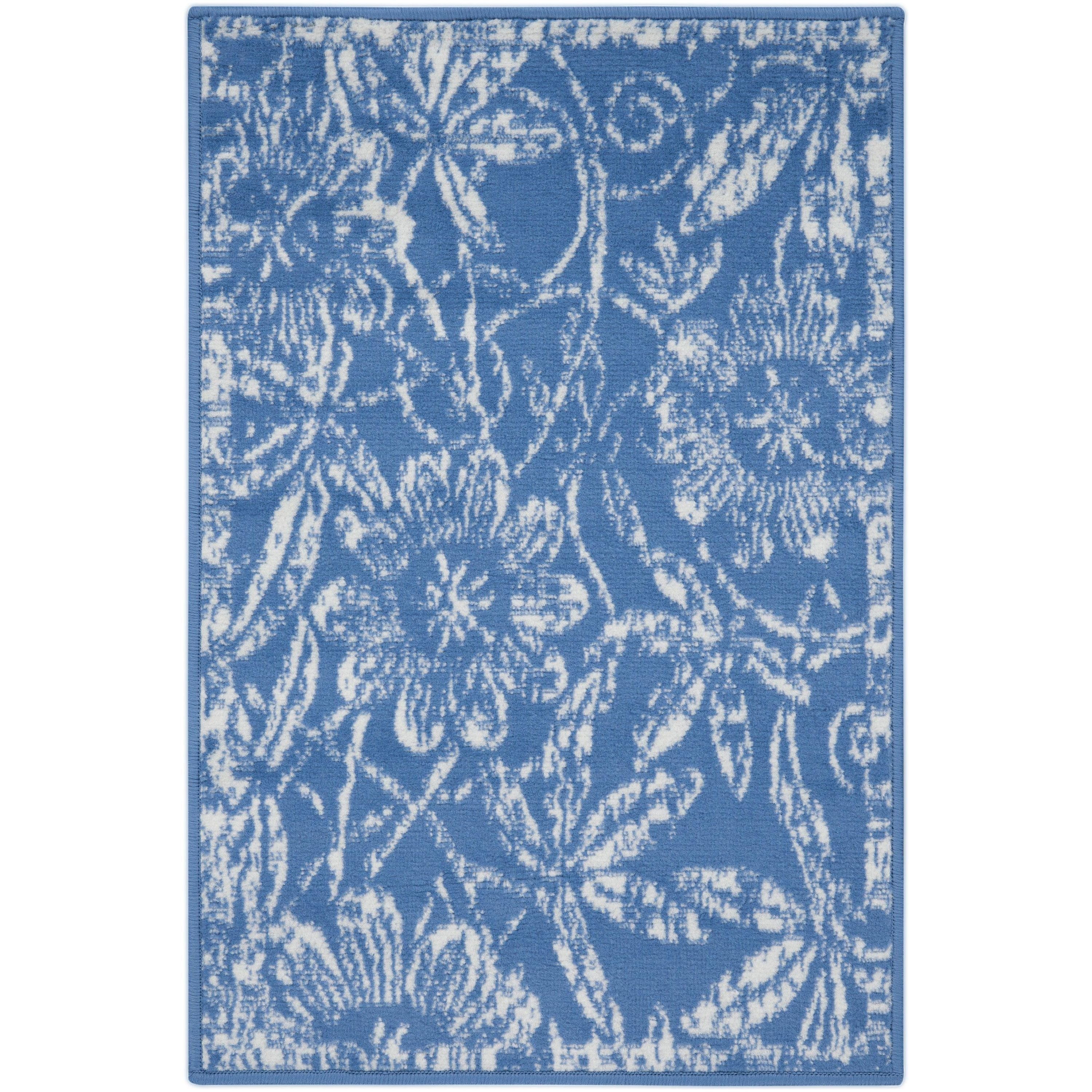 captivating Whimsicle WHS05 Blue rug from the unique Whimsicle Collection. Embracing bohemian flair, this collection features a blend of tribal, geometric, and floral designs with vintage patinas in trendy neutral tones. Perfect for adding character to any space, these low-profile rugs are expertly machine-made from soft polyester for a luxurious feel.