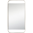 Zariyah Mirror, a stunning addition to any entryway. This wall mirror exudes modern minimalism with its sleek design and painted antique brass finished iron frame. The contemporary appeal of the mirror is beautifully balanced by its streamlined structure, making it a versatile piece that can complement various interior styles.