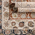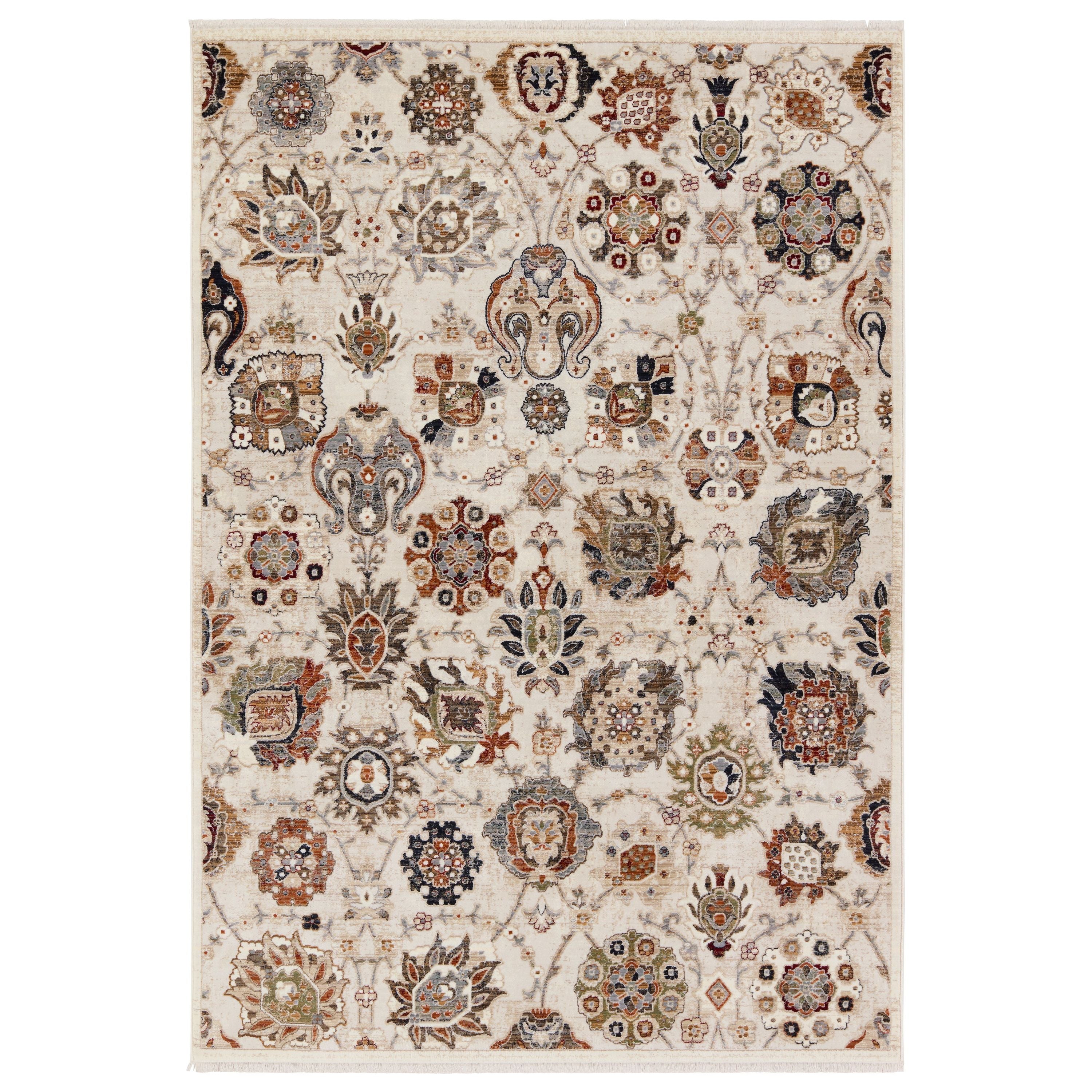 Zefira ZFA20 Althea, a stunning rug inspired by vintage Turkish designs. The Zefira collection beautifully merges traditional motifs with modern color palettes for a fresh and stylish look. The Althea rug showcases an elegant Oushak motif in rich shades of cream, red, blue, gray, green, orange, and beige.